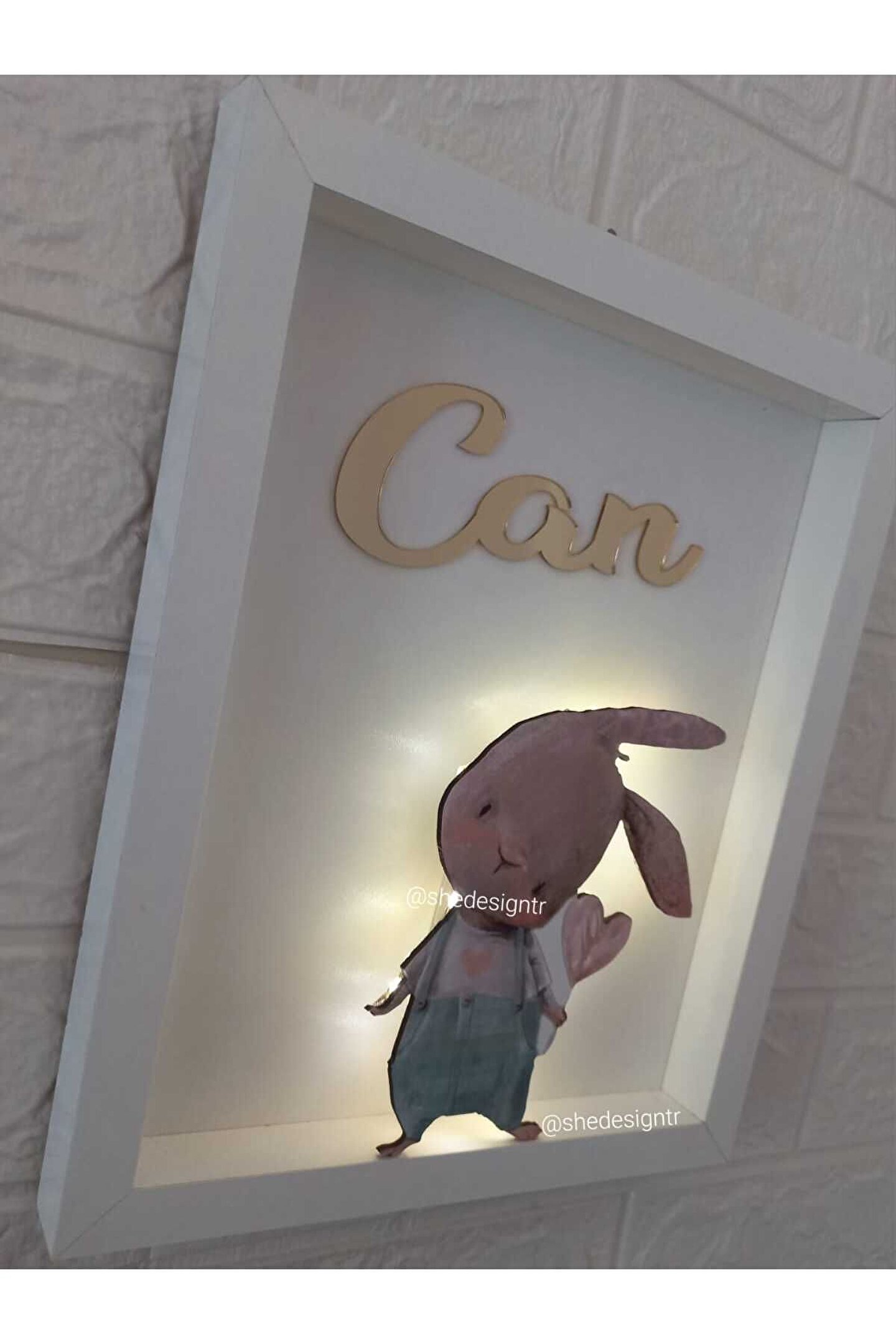 BEBEK İSMİNE ÖZEL HAZIRLANAN LEDLİ AHŞAP PANO HASTANE ODASI KAPI SÜSÜ
