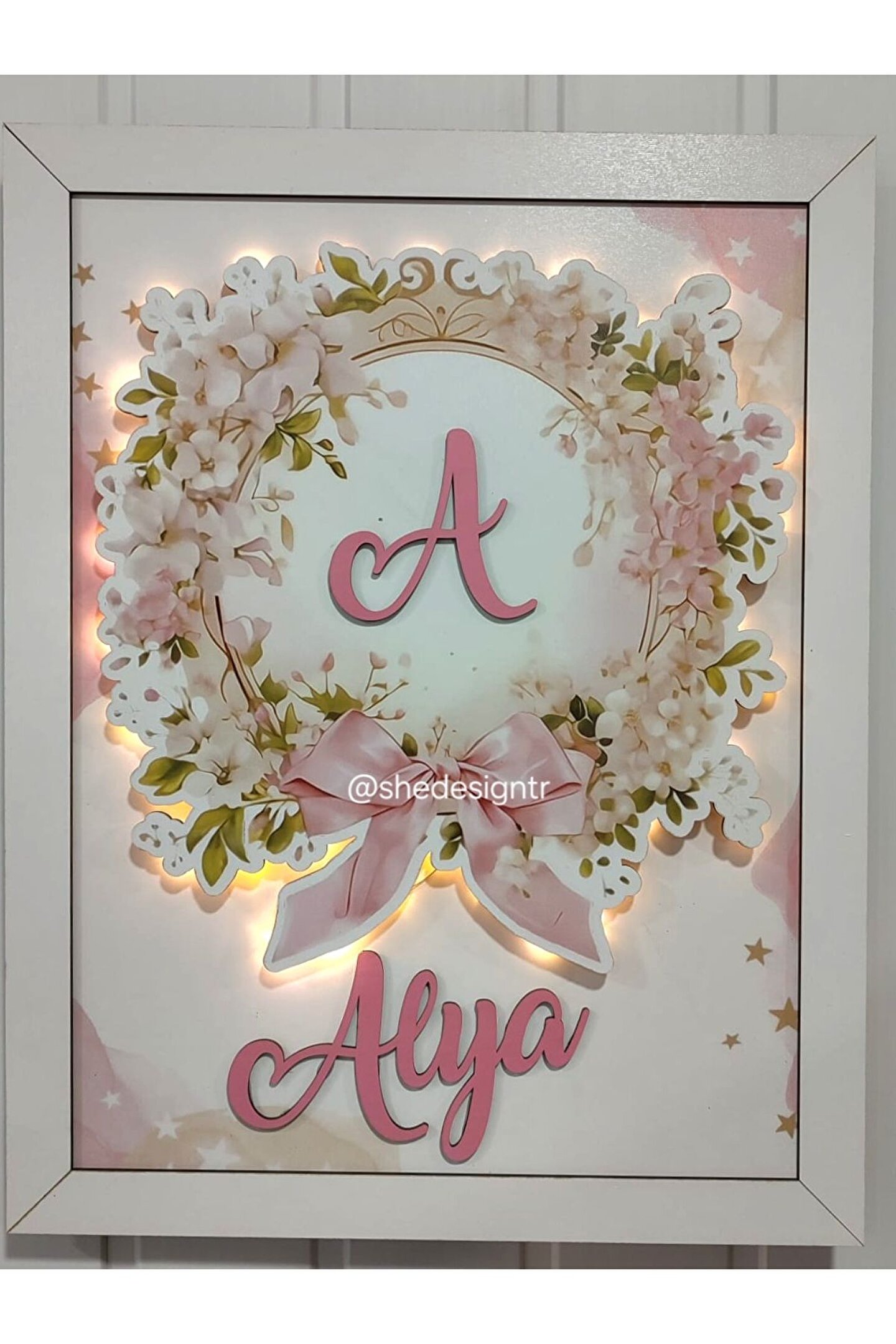 Bebek İsmine Özel Hazırlanan Ledli ve Ahşap Figürlü Hastane Odası Kapı Cercevesi