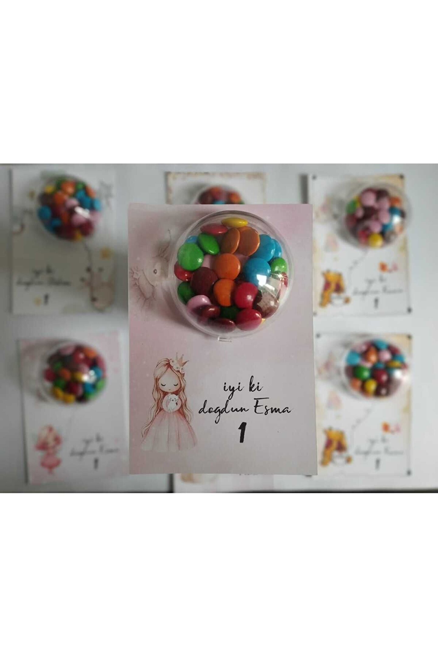 Bonibon Dolu Küre İsme Özel Doğum Günü ve Yeni Doğan Konsept Hediyelik kart Prenses Karakter 10 adt