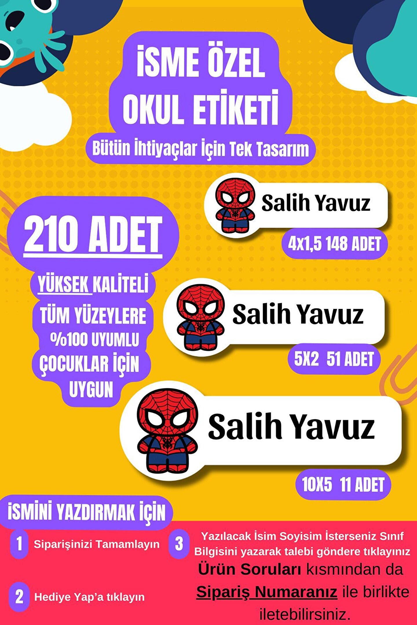 Okul Etiketi Özel İsimli Spider Man Karekterli Defter Çanta Matara Kalem Kişiye Özel İsimli Yazılı