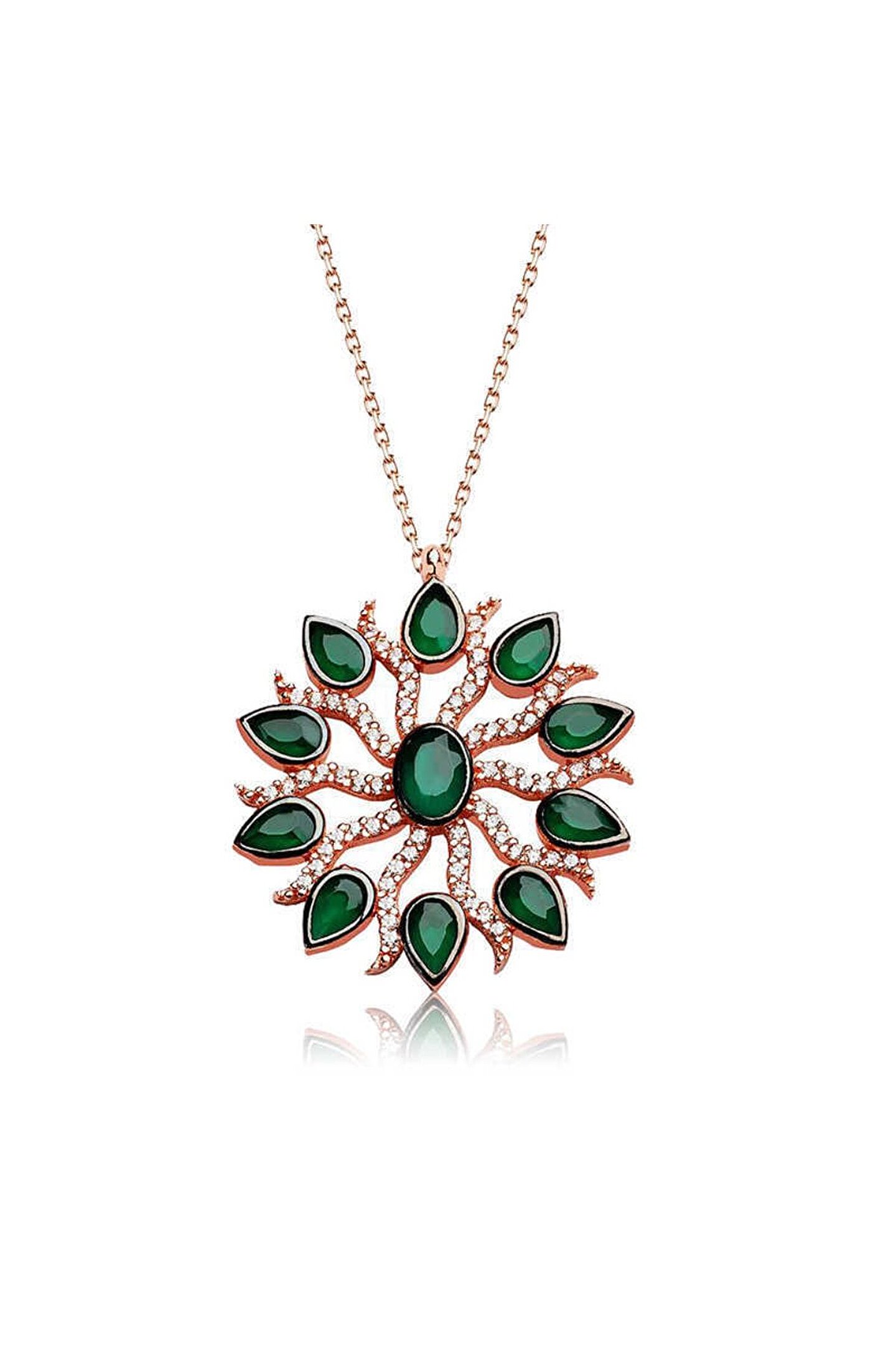 925 Ayar Gümüş Yeşil Güneş Kadın Gümüş Kolye