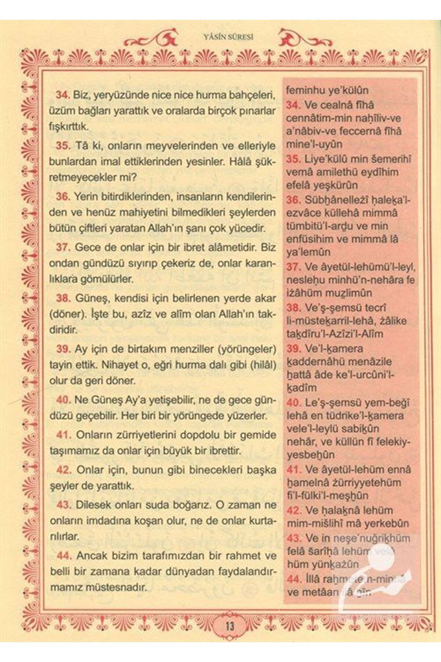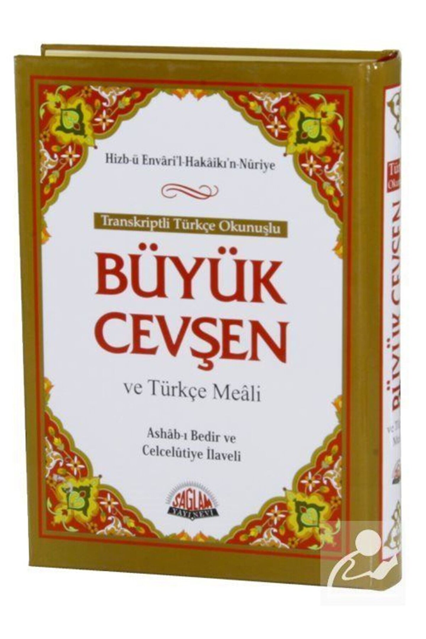 Büyük Cevşen ve Türkçe Meali (Orta Boy) Transkriptli Türkçe Okunuşu Ashab-ı Bedir ve Celcelütiye İlaveli Bediüzzaman Said Nursi / Sağlam Yayınları Basım Yılı: 2023; Sayfa Sayısı: 560; Kağıt Türü: Kitap Kağıdı; Ebat: 17 x 24; Dil: Arapça, Türkçe; Cilt Durumu: Ciltli; ISBN: 9786057625243; Yazar: Bediüzzaman Said Nursi; Çevirmen: Hasan Basri Yıldız; Hizb-ü Envaril Hakaikın Nuriye Büyük Cevşen ve Türkçe Meali (Üçlü Cevşen) Tecvidli Transkripsiyonlu Türkçe Okunuşu (Ashab-ı Bedir ve Celcelütiye İlaveli) Tertip ve Tanzim; Bediüzzaman Said Nursi Tercüme: Hasan Basri Yıldız Büyük cevşen Bilgisayar hatlı kolay okunuşlu arapça ile hazırlanmış Arapçanın Transkripsiyon usulü ile Tecvidli Türkçe okunuş'la arapça okumasını bilmeyenler için büyük kolaylık sağlıyor.; Günümüz Türkçesiyle açıklamalı Meali okuduğumuzu anlamamıza yardımcı oluyor.; İçindekiler: Yâsîn Sûresi - Fetih Sûresi - Rahman Sûresi - Haşr Sûresi - Mülk Sûresi - Nebe' Sûresi - Bakara Sûresi - Hatim Duası - Cevşenü'l-Kebîr - Evrâd-ı Kudsiye - Delâili'n-Nur Sekine - Veysel Karani'nin Münâcatı - Duâ-i Tercüman-ı Ism-i A'zam - Duâ-i İsm-i A'zam - Münâcâtü'l-Kur'ân Tahmîdiye - Hülâsatü'l-Hülâsa - Tazarru ve Niyâz-1 - Tazarru ve Niyâz-2 - Tazarru ve Niyâz-3 - Celcelûtiye Kasidesi - Ashâb-ı Bedir.