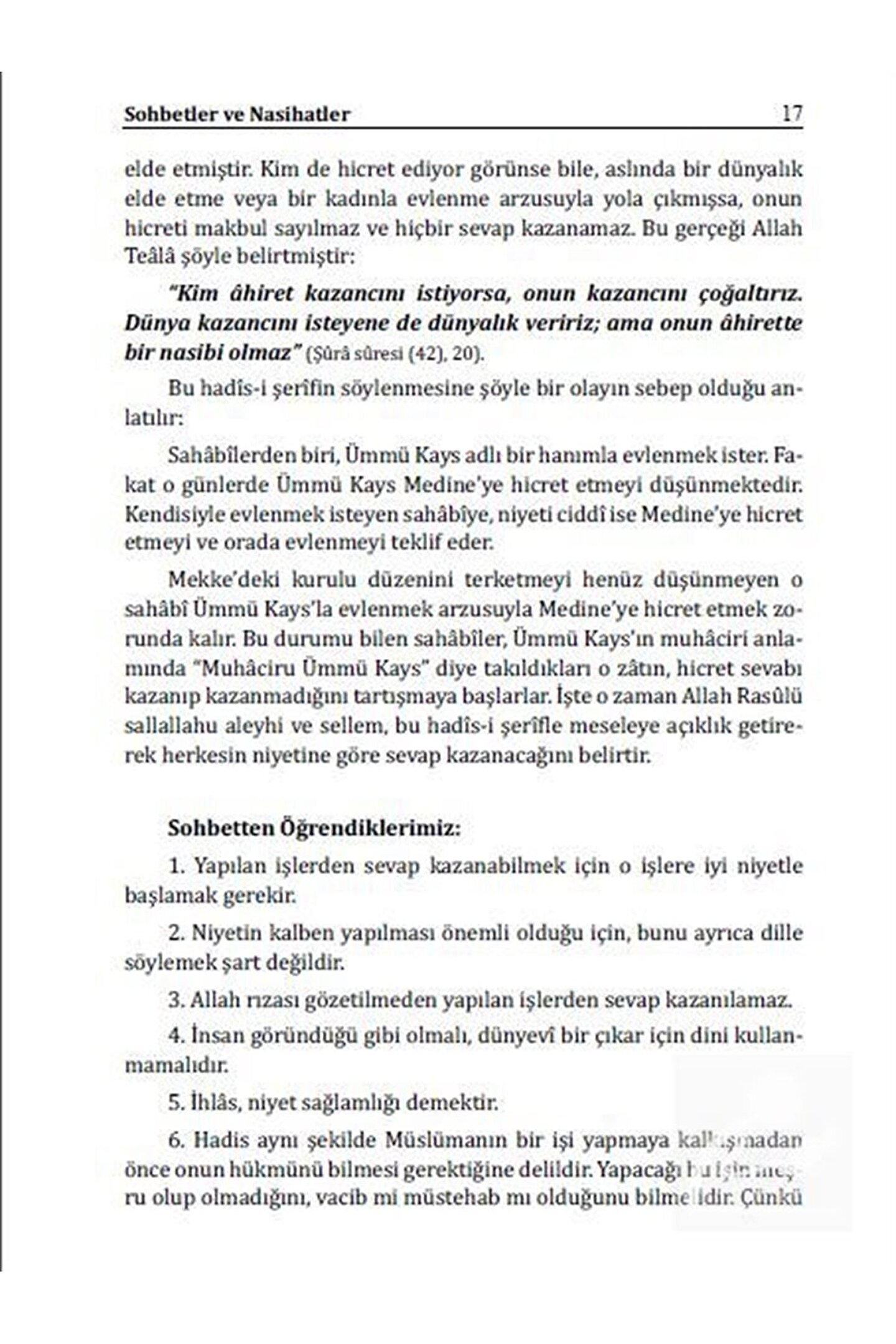 Sahihi Buhari'den Sohbetler ve Nasihatler Harun Yıldırım / Sağlam Yayınları Basım Yılı: 2013; Sayfa Sayısı: 1006; Kağıt Türü: Kitap Kağıdı; Ebat: 16,5 x 24; Dil: Türkçe; Cilt Durumu: Ciltli; ISBN: 9789759180805; Yazar: Harun Yıldırım; Hatibin minberdeki görevi, peygamber görevinin bir devamıdır.; Peygamberimizin minberdeki sesini günümüze kadar hatipler taşıya gelmiştir.; Bu cihetle hatiplerin sorumluluğu ve görevlerinin kudsiyeti tartışılamaz derecede yüksektir.; Allah Rasûlü sallallahu aleyhi ve sellem Cuma günü cemaat toplanınca mescide girer, ashabına selâm verir, minbere çıkınca kıbleye dönüp dua etmez, yüzünü cemaate çevirip ezanı dinlemek üzere otururdu.; Ezandan sonra kalkıp Allah'a hamd, sena ve şehadetten sonra; coşkulu ve uyarıcı bir sesle hutbeyi irad ederdi.; Hutbeyi kısa tutar, namazı uzatır, Allah'ı çok anar, kısa ve özlü sözler kullanırdı.; Hutbelerinde; İslâmın temel esaslarını anlatır, emir ve nehiylerini bildirir, ashabının ihtiyaç duyduğu uyarıcı ve müjdeleyici konularda hutbeler okurdu.; Yeri geldiğinde hutbesini keserek cemaatiyle ilgilenir, sorulara cevap verir, bazen minberden inip tekrar çıkar ve daha sonra hutbesine devam ederdi.; Hutbenin, cemaati bire bir olarak ilgilendirmesi, dikkatini çekmesi, Fikir ve yol göstermesi, her alanda dinleyiciyi tatmin etmesi gerekir.; Allah Rasûlü sallallahu aleyhi ve sellemin yalnızca Cuma ve bayram namazları ile sınırlı değildir.; Bazen sabah namazından sonra, bazen öğle namazından sonra hutbe okumuş insanlara İslâm'ı anlatmıştır.; Hutbeler dinin anlaşılmasında büyük önem taşımaktadır.; Allah Rasûlü sallallahu aleyhi ve sellem ve ashabının hutbeleri bizim için birer hazine niteliğindedir, insanları aydınlatıcı, yol gösterici, öğretici mesajlarla doludur.