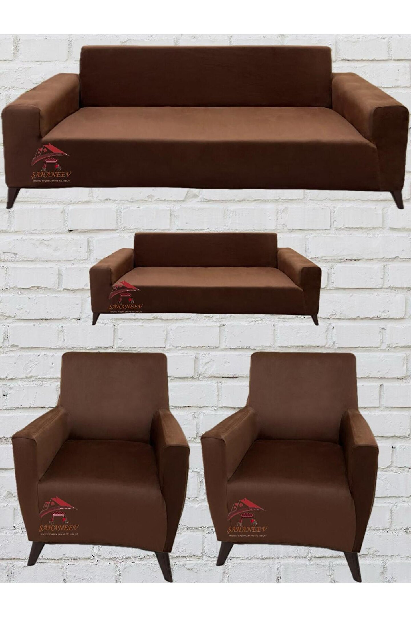 Sahaneev 3+2+1+1 İtalyan Süet Koltuk Örtüsü(KAHVERENGİ)