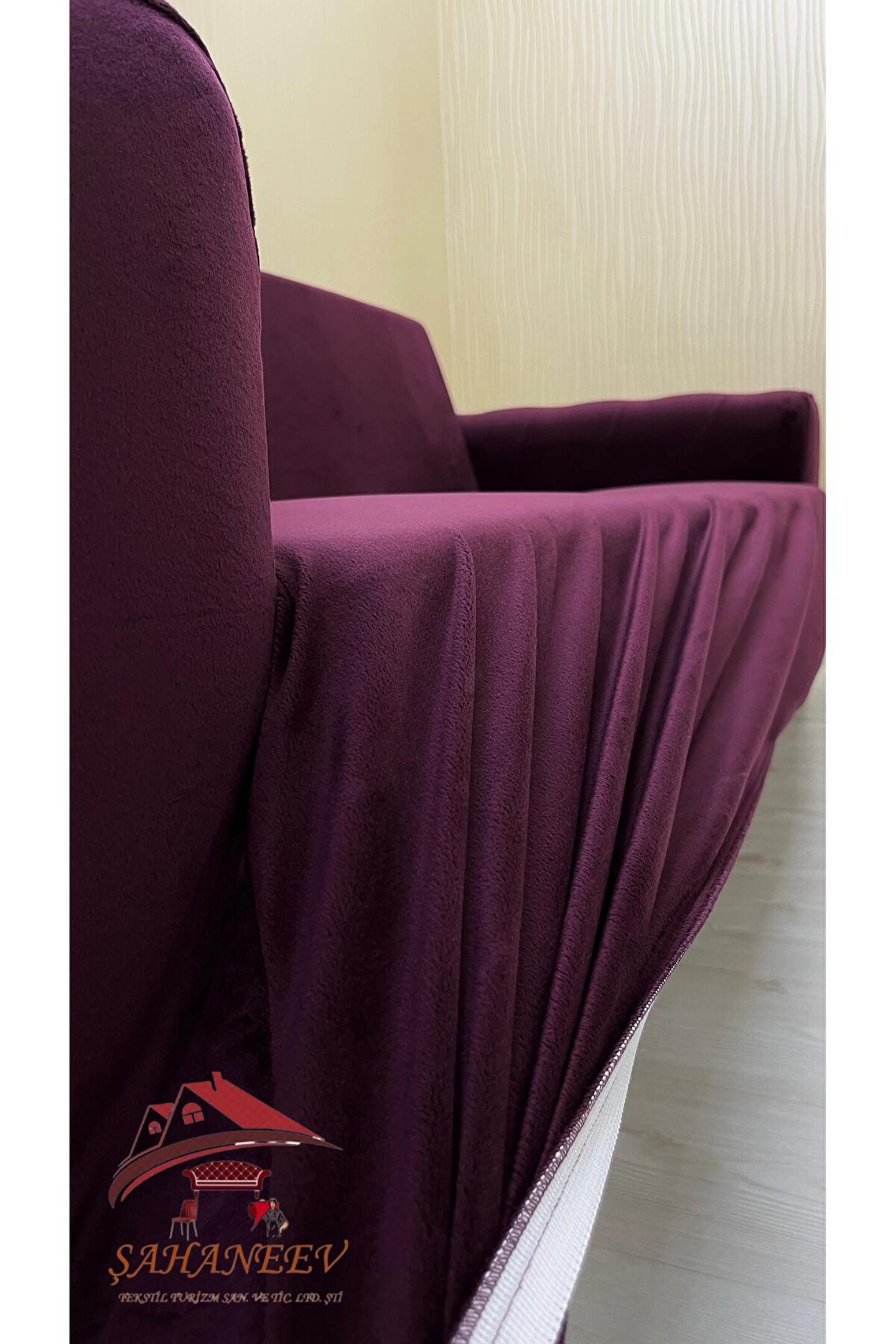 Sahaneev 3+2+1+1 İtalyan Süet Koltuk Örtüsü(MÜRDÜM RENK)