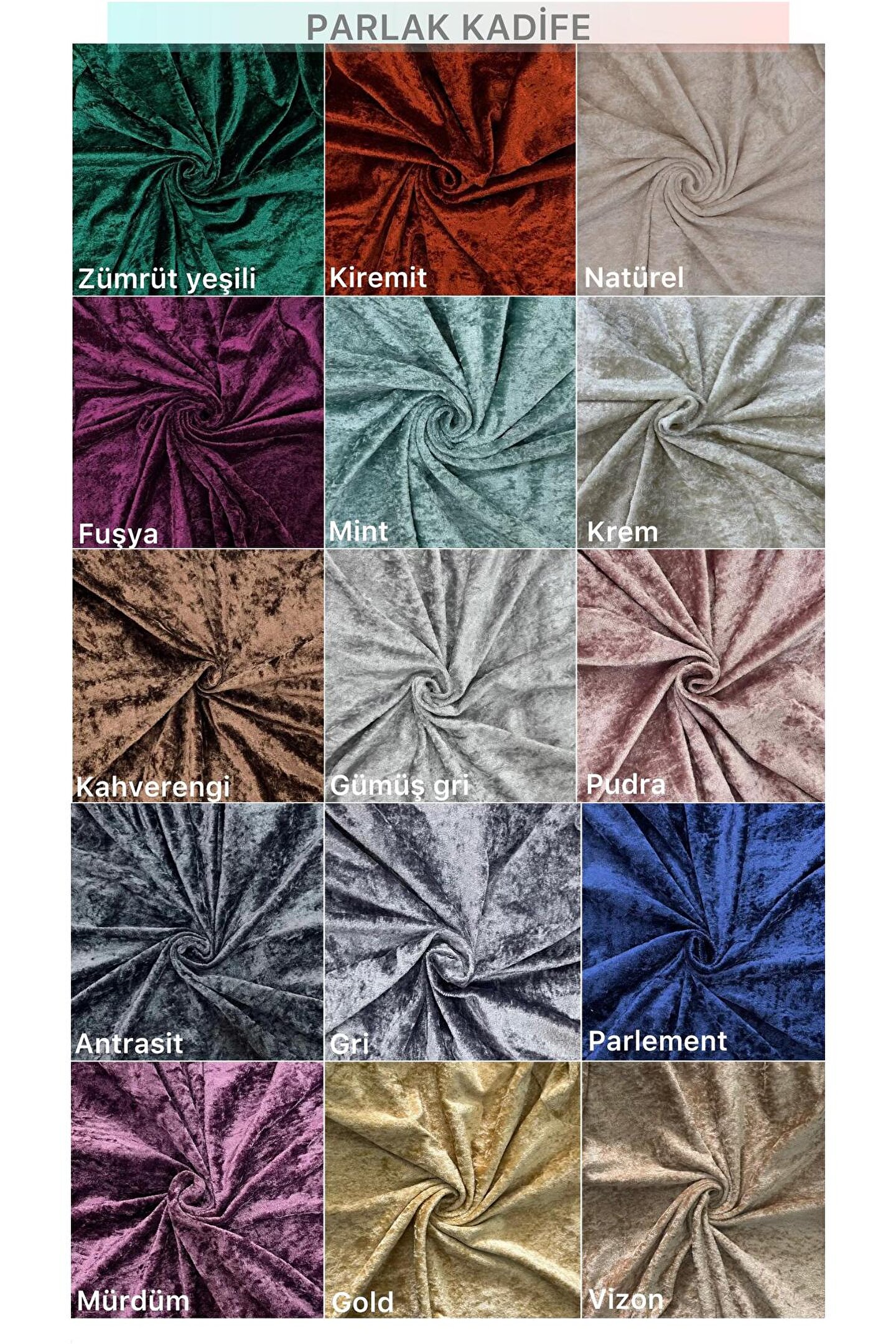 PARLAK KADİFE -Yumuşak pürüzsüz ve parlak bir dokuya sahiptir. ; -Kadife kumaş örme yöntemiyle üretilmiştir. ; -Pamuk,İpek ve sentetik elyaf birlesimleriyle yapılmıştır. ; -Kadife kumaş yazın terletmeyen kışın üşütmeyen bir kumaş olduğu için 4 mevsim kullanıma uygundur. ; -Genellikle koltuk tasarımlarında kullanılan Kadife kumaş şimdide Örtülerimizin arasında yer almıştır. ; -Evlerinizi parlaklığıyla görkemli gözükmesin sağlar. ; -Üzerinde toz-kir-leke-kıl Barındırmayan kumasımız Özellikle EVCİL HAYVANLAR için üretimini sağladık... ; -Pamuk ipliklerinden dokunmuş bir kumaş türüdür. ; Yüzeyi yumuşak, Şık tüylü ve kadife dokuludur Sonuç olarak ortaya çıkan kumaş, görünümü ve dokusuyla oldukça estetik bir görüntü oluşturur. ; -Lüks ve konforlu bir hissiyat sağlayan bir kumaş türüdür. ; İpek kadife kumaş, özel bir işleme tabi tutulmuş, ipek ipliklerden dokunan ve pile (tüylü kısım) oluşturmak için özel bir makinede işlenmiş bir kumaştır. ; -30 derecede çok düşük devirde yıkayın asla yumuşatıcı kullanmayın Kaynarda sakın yıkamayın. ; -Silme yapmayın direk makina da yıkayın kumaşın ömrü uzun kalsın... ; -Sentetik elyaflardan üretilen kadife kumaşlar ise su iticiliğine sahiptir.;