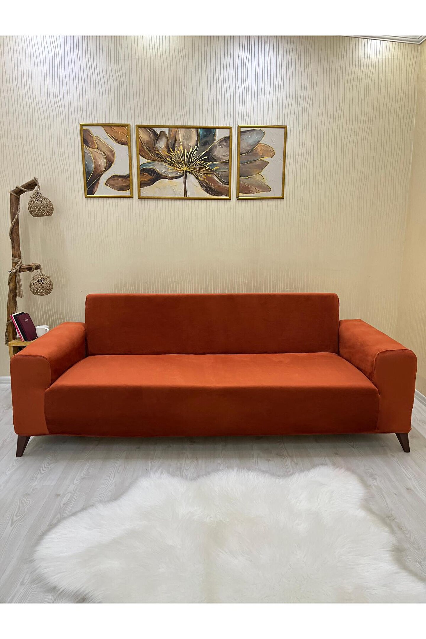 Sahaneev 3Lü Koltuk İtalyan Süet Koltuk Örtüsü(KİREMİT)