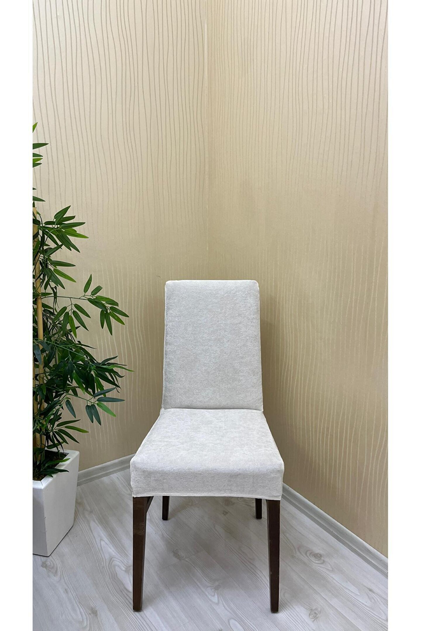 Sahaneev babyface kumaş sandalye kılıfı KREM RENK (6 adet)
