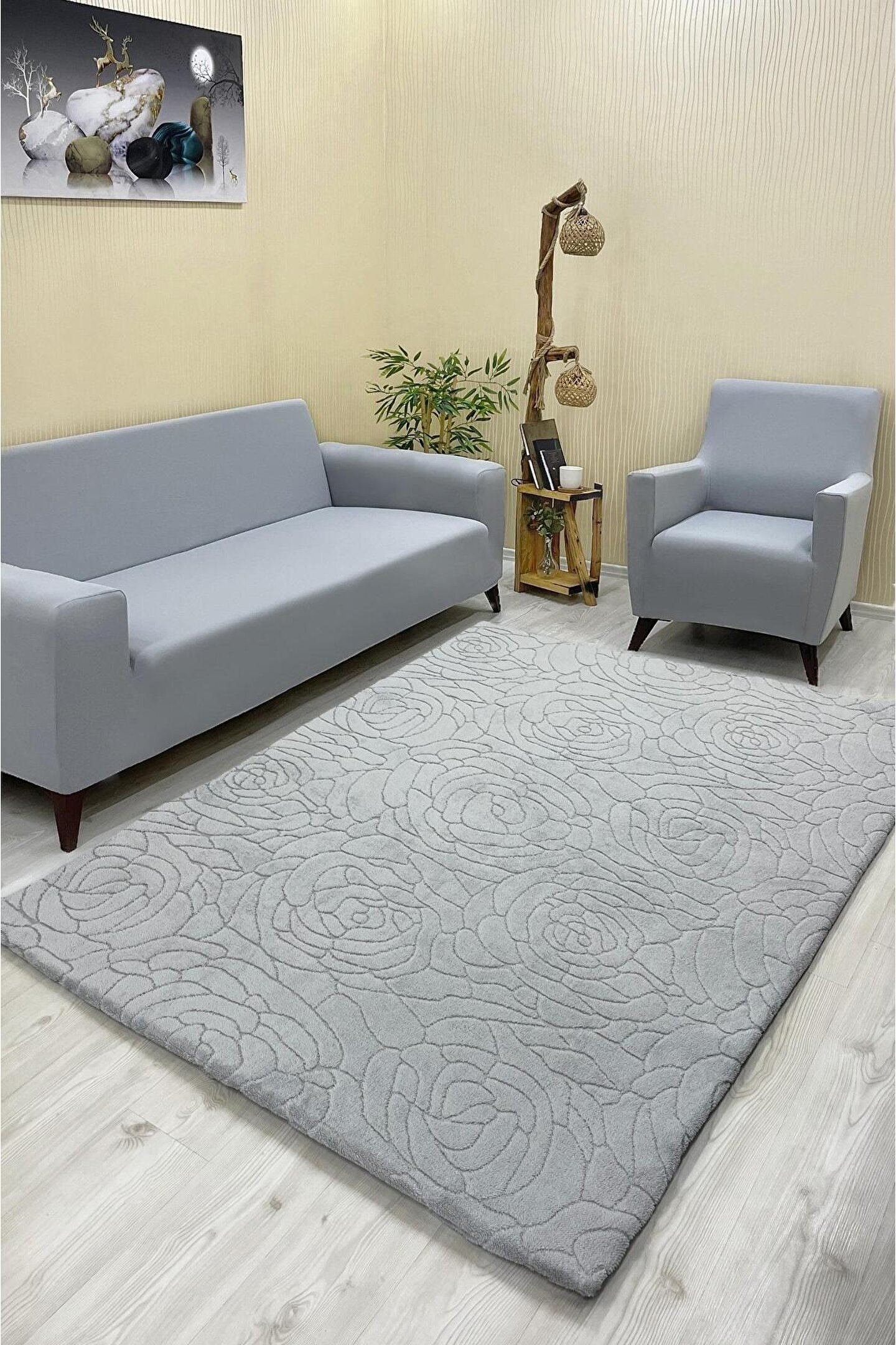 Sahaneev halı örtüsü welsoft kumaş AÇIKGRİ RENK (GÜL MODEL)