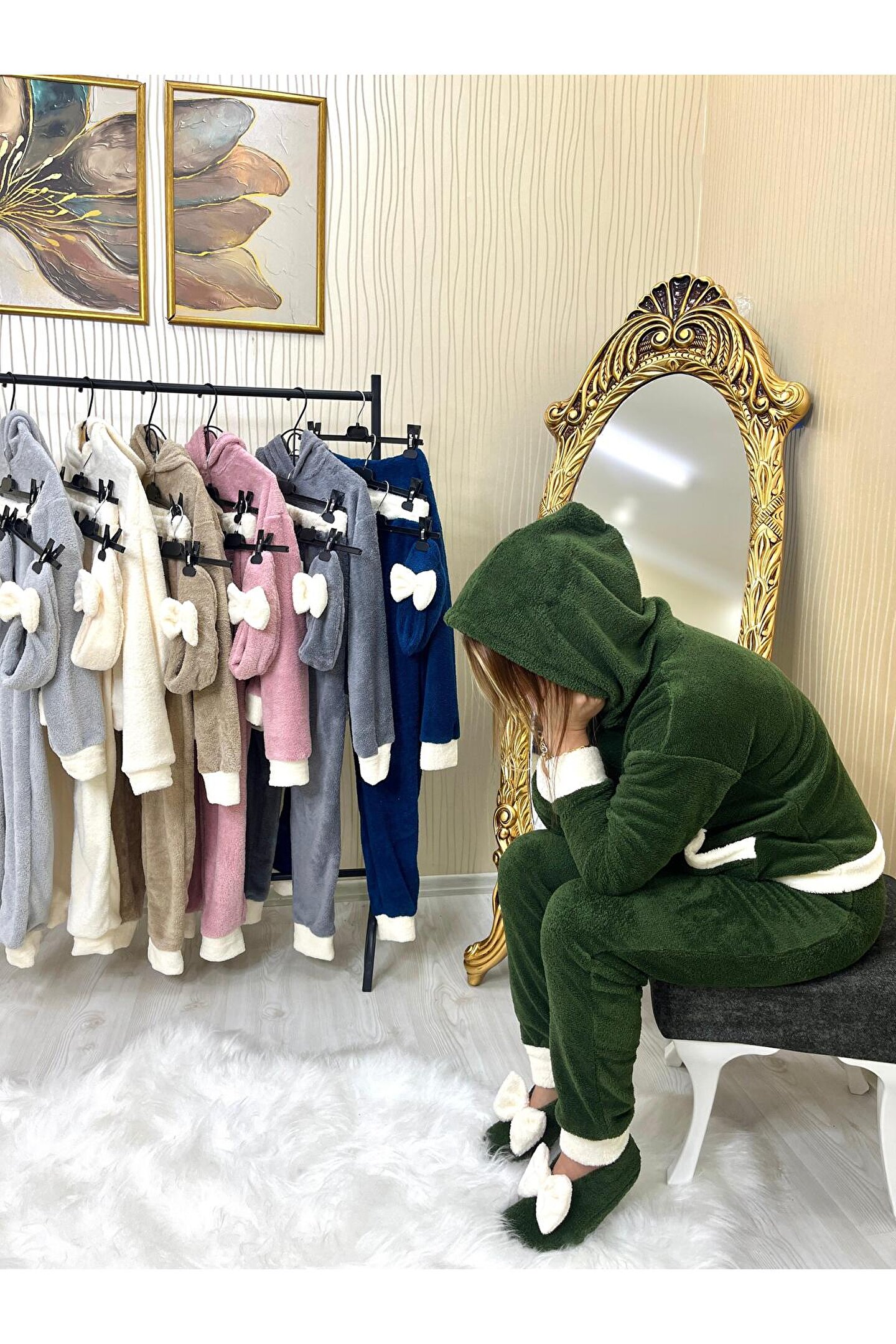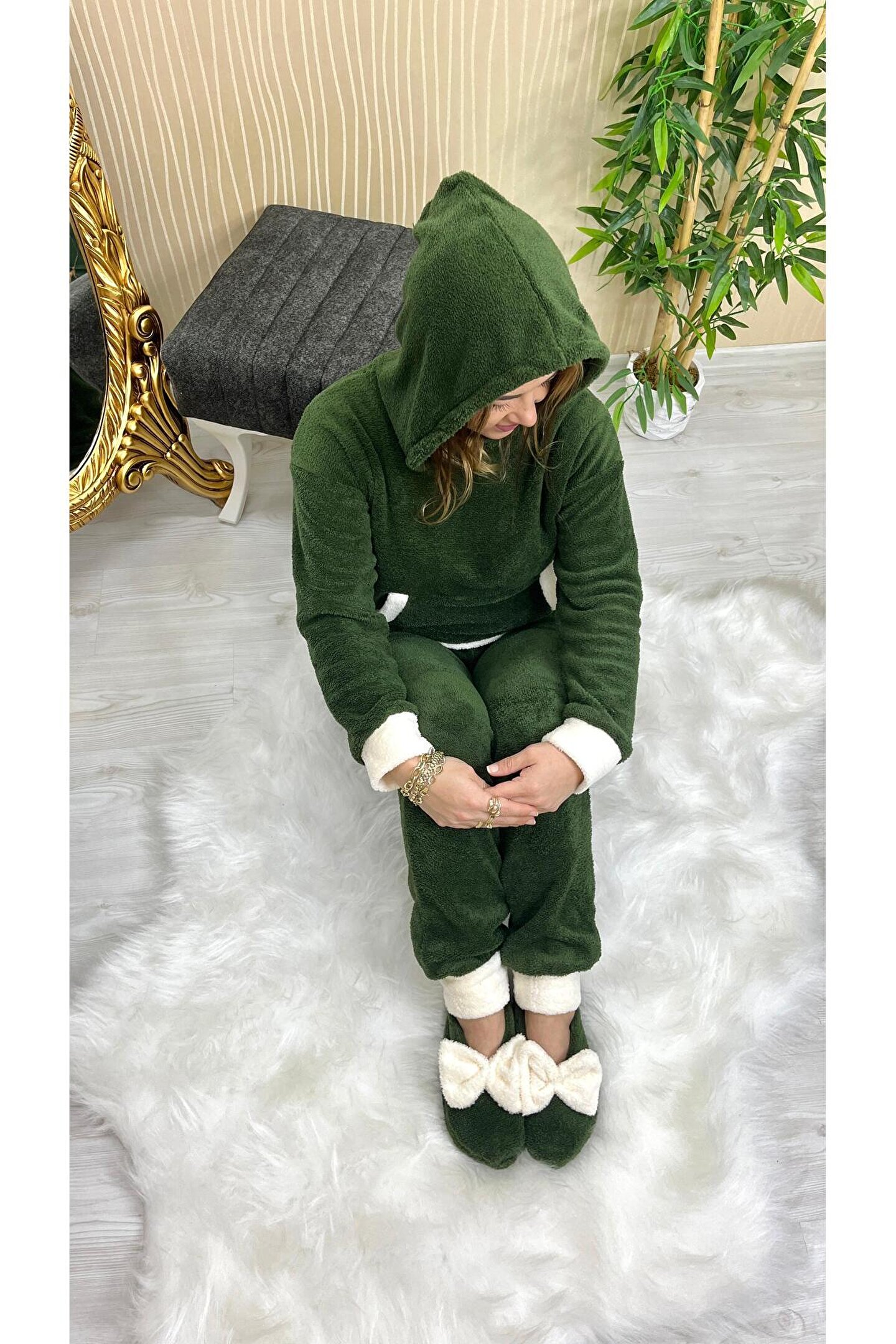 Sahaneev peluş kapşonlu kanguru model (PATİK HEDİYELİ)