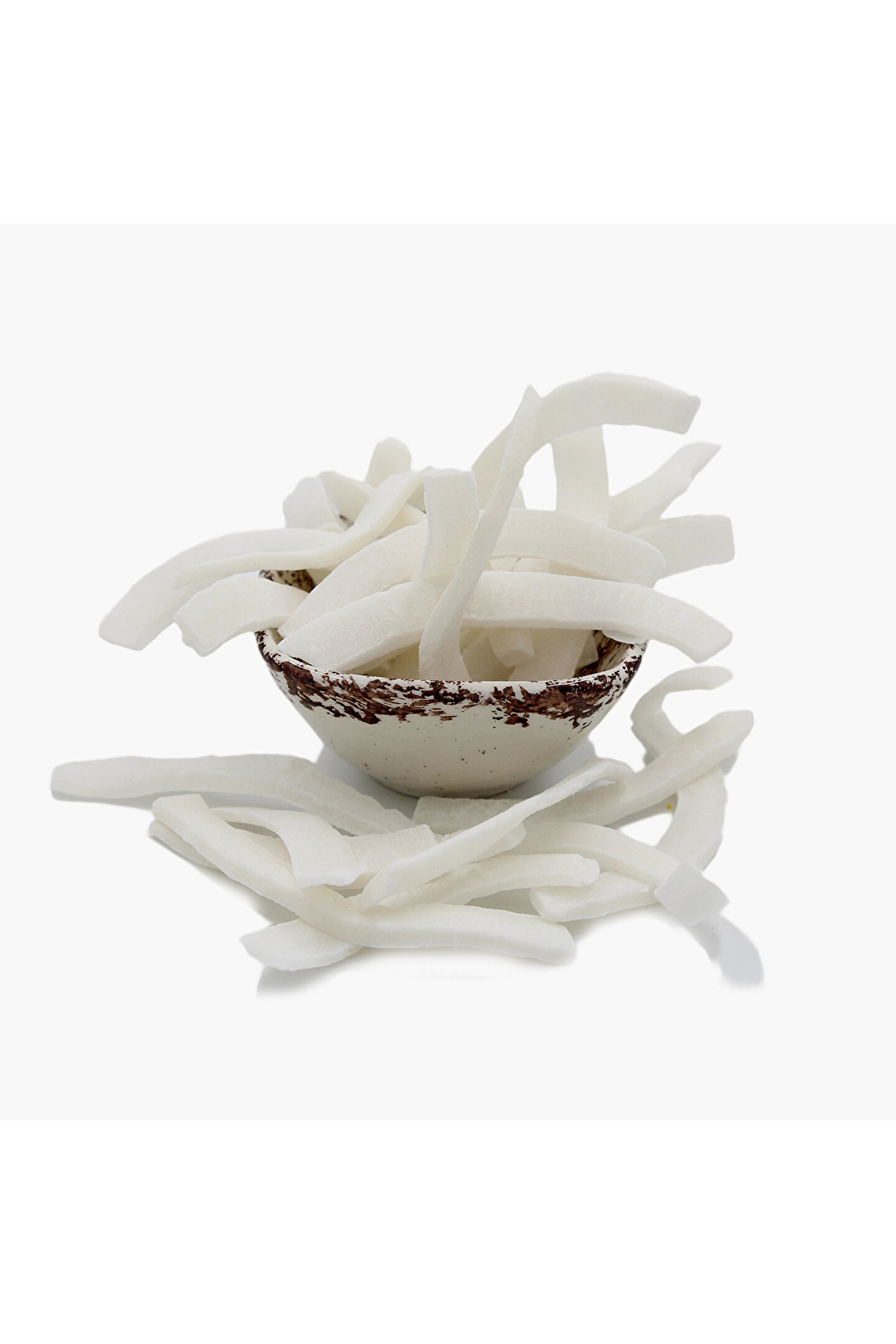 Hindistan cevizi kurusu, özenle seçilen taze hindistan cevizlerinin ince dilimlenip kurutulmasıyla elde edilir. Tatlımsı aroması, yumuşak dokusu ve ferahlatıcı lezzetiyle hem tek başına atıştırmalık olarak hem de tatlı ve kahvaltılarda kullanıma uygundur.