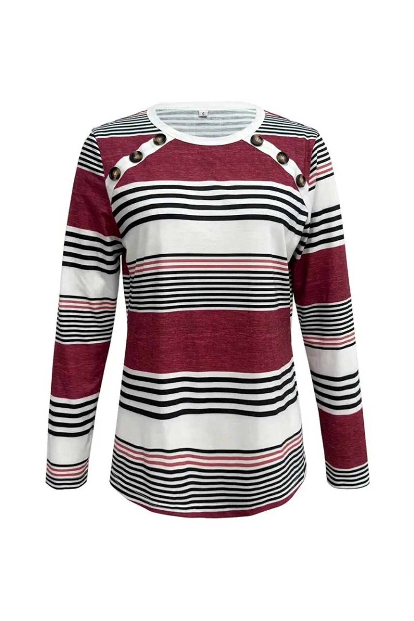 SaklıModa Kadın Uzun Kollu Bisiklet Yaka Düğme Detaylı Desenli Süprem Bluz