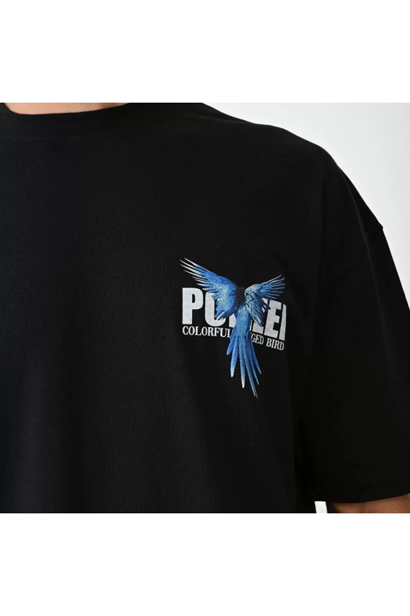 Unisex Bisiklet Yaka Baskılı Oversize T-Shirt - Siyah TREND_ILKBAY