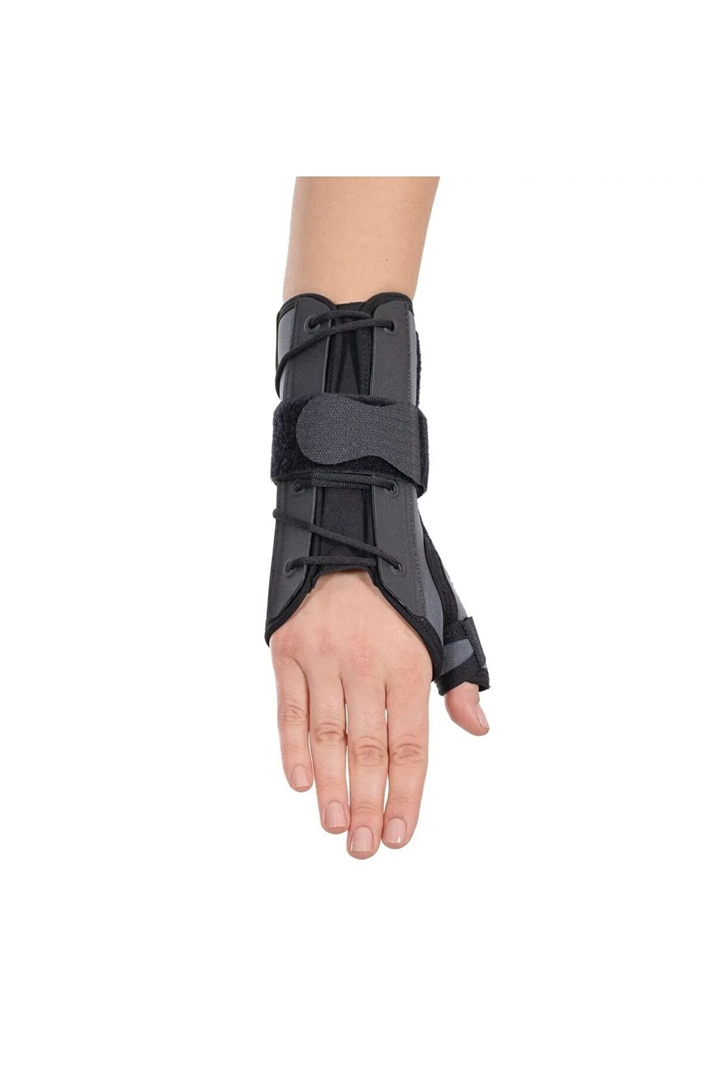 Bağcıklı Başparmak Destekli El Bilek Ateli ?Bileğin ve başparmağın nötral pozisyonda immobilizasyonunu sağlayan bir atel çeşididir. Bileğin alt tarafında, başparmak yanında birer alüminyum ve bileğin üst tarafında 2 adet plastik destek vardır. Üzerindeki bağcıklı sistem bileğin stabilizasyonunu sağlar. ? Endikasyonlar * De quervain sendromunda ; * Karpal Tünel Sendromu ; * Cerrahi müdahale sonrası rehabilitasyonda ; * El bileği ve başparmak kireçlenmelerinde ; * Tendon ve yumuşak doku hasarlarında ;