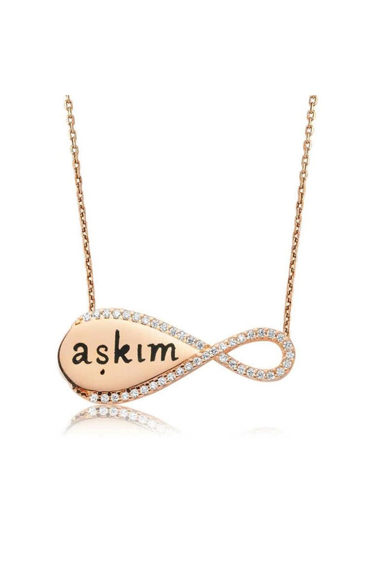 925 Ayar Gümüş Aşkım Yazılı Sonsuzluk Kadın Gümüş Kolye