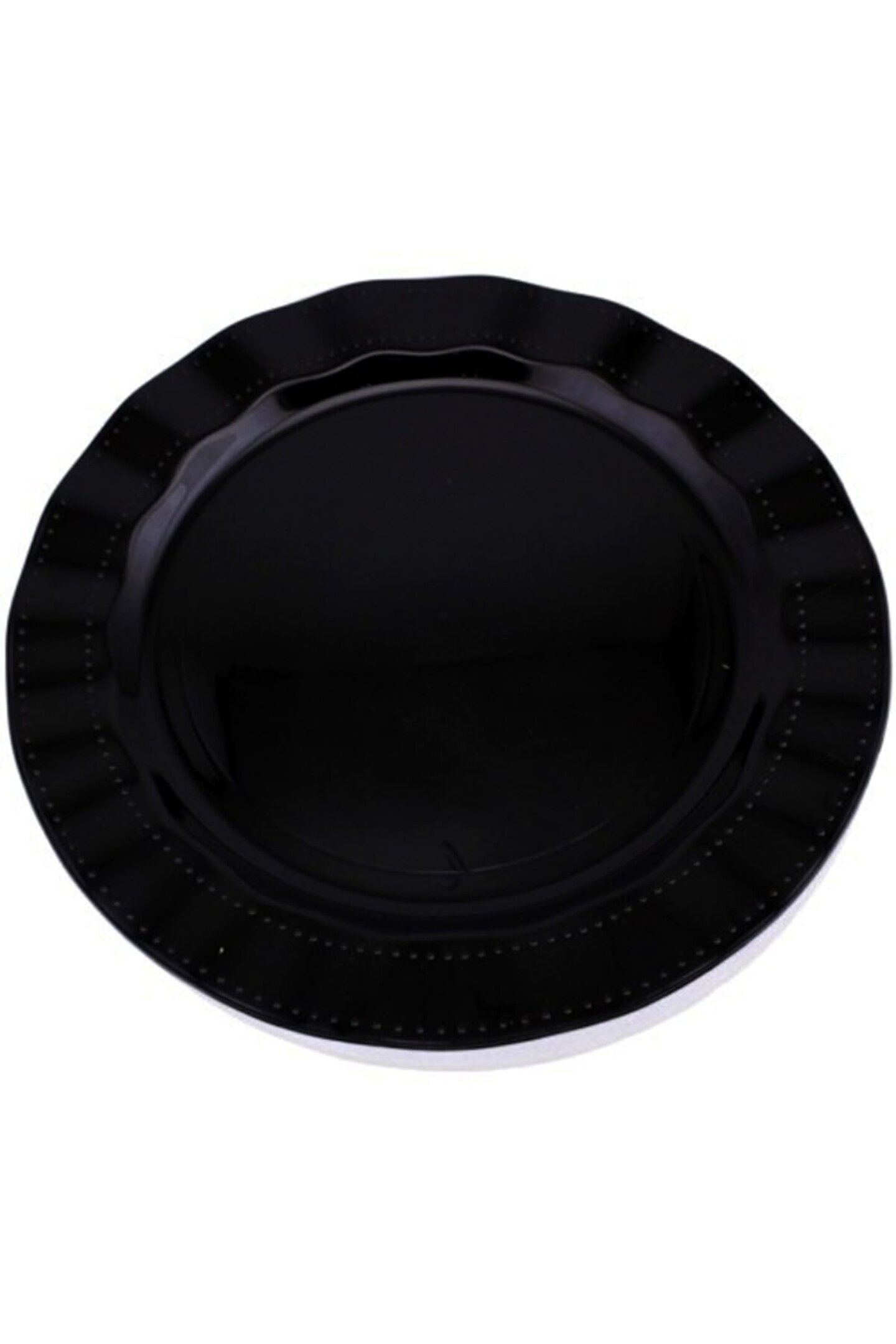 Samur Siyah Renk Lüks Plastik Mika Yuvarlak Tabak 26 Cm 6 Adet