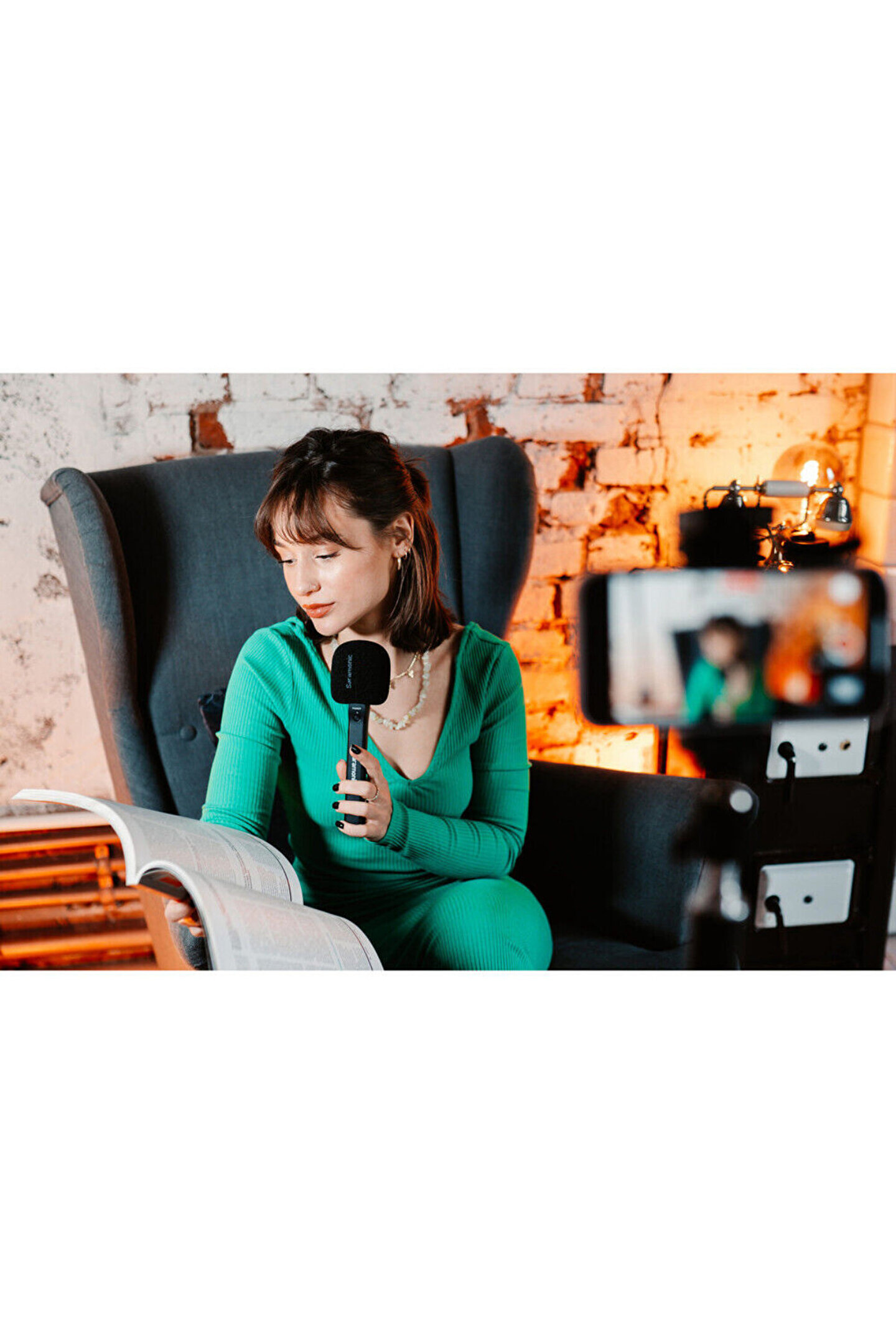 Haber raporlarını, konuşmaları, röportajları ve podcast'leri yakalamayı hızlı ve kolay hale getiren hafif ve ergonomik bir verici tutucu olan Saramonic Blink 500 Pro HM ile Blink 500 Pro TX vericinizi kablosuz bir el mikrofonuna dönüştürün . Vericiniz, dahili 1100 mAh pil ile vericinin çalışma süresini iki katına çıkaran HM tutucusuna tam olarak oturur. Tek tıklamayla eşleştirme, verici tutucuda kalırken gerçekleştirilebilir ve bu da kurulum sürecini basitleştirir.