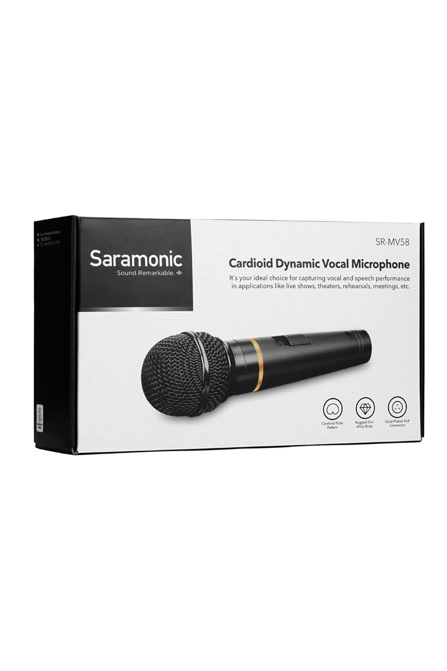 Saramonic SR; MV58 Kardioid Dinamik Vokal Mikrofon Saramonic SR; MV58 Dinamik Vokal Mikrofonu Kardioid Dinamik vokal mikrofon Provalar, canlı yayınlar ve evde ses kayıtları için uygun bir çözüm Dahili pop filter Kardioid kutup deseni Dayanıklı çinko alaşımlı gövde Yüksek kaliteli kardioid dinamik vokal mikrofonu Dayanıklı çinko alaşımlı gövde Kardioid alma düzeni Ek pillere veya fantom gücüne gerek yok XLR; 6,35 mm kablo, mikrofon klipsi ve köpük ön cam dahildir Şarkı söyleme ve konuşma gibi profesyonel ses kullanımı için ideal Kardioid Dinamik Vokal Mikrofon Saramonic SR; MV58, kardiyoid dinamik bir vokal el mikrofonudur; Canlı gösteriler, tiyatrolar, provalar, konuşmalar, toplantılar vb; uygulamalarda vokal ve konuşma performansını yakalamak için tasarlanmıştır; Kardioid alma modeli, mikrofonun önündeki sesi almaya odaklanır ve istenmeyen arka plan gürültüsünü etkili bir şekilde azaltır; Geliştirilmiş ve çıkarılabilir köpük ön camı ve dahili pop filtresi, vokalleri kaydetmek için ideal olan patlayıcıları en aza indirir; Tamamen metal yapıya sahip olan SR; MV58, iyi bir şekle sahiptir, dokunması rahattır ve yüksek gürültü direncine sahiptir; Sağlam ve kompakt ana gövde, ister elde ister mikrofon sehpasında tutmak için mükemmeldir; XLR; 6; 35mm Kablo Bağlantısı ile, Ek pillere veya fantom gücüne gerek yoktur; Saramonic SR; MV58 sadece olağanüstü bir ses sunmakla kalmaz, aynı zamanda şık ve kullanışlıdır, şarkı söyleme ve konuşma gibi profesyonel vokal kullanımları için idealdir; Akustik Prensip: Dinamik Kutup Deseni: kardioid Frekans tepkisi: 35; 15000Hz Duyarlılık:; 51±3dB Çıkış empedansı: 600? Çıkış Konektörü: XLR Boyutlar: ?52; 175mm(2,05×6,89") Ağırlık: 289g PAKET İÇERİĞİ Mikrofon Kapsül×1 Açma / Kapama Düğmesi×1 XLR 3; pin Konnektör×1;