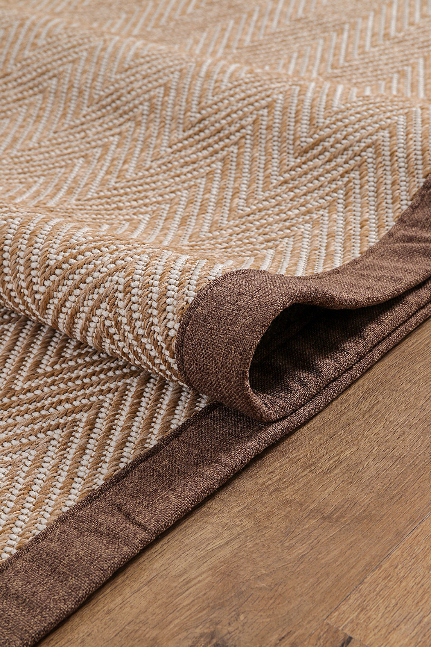 SARAZ HALI 0408-Kahve Kumaş Bordür Sisal Halı Kilim Hav Toz Vermez Kolay Temizlenen Hasır Kilim