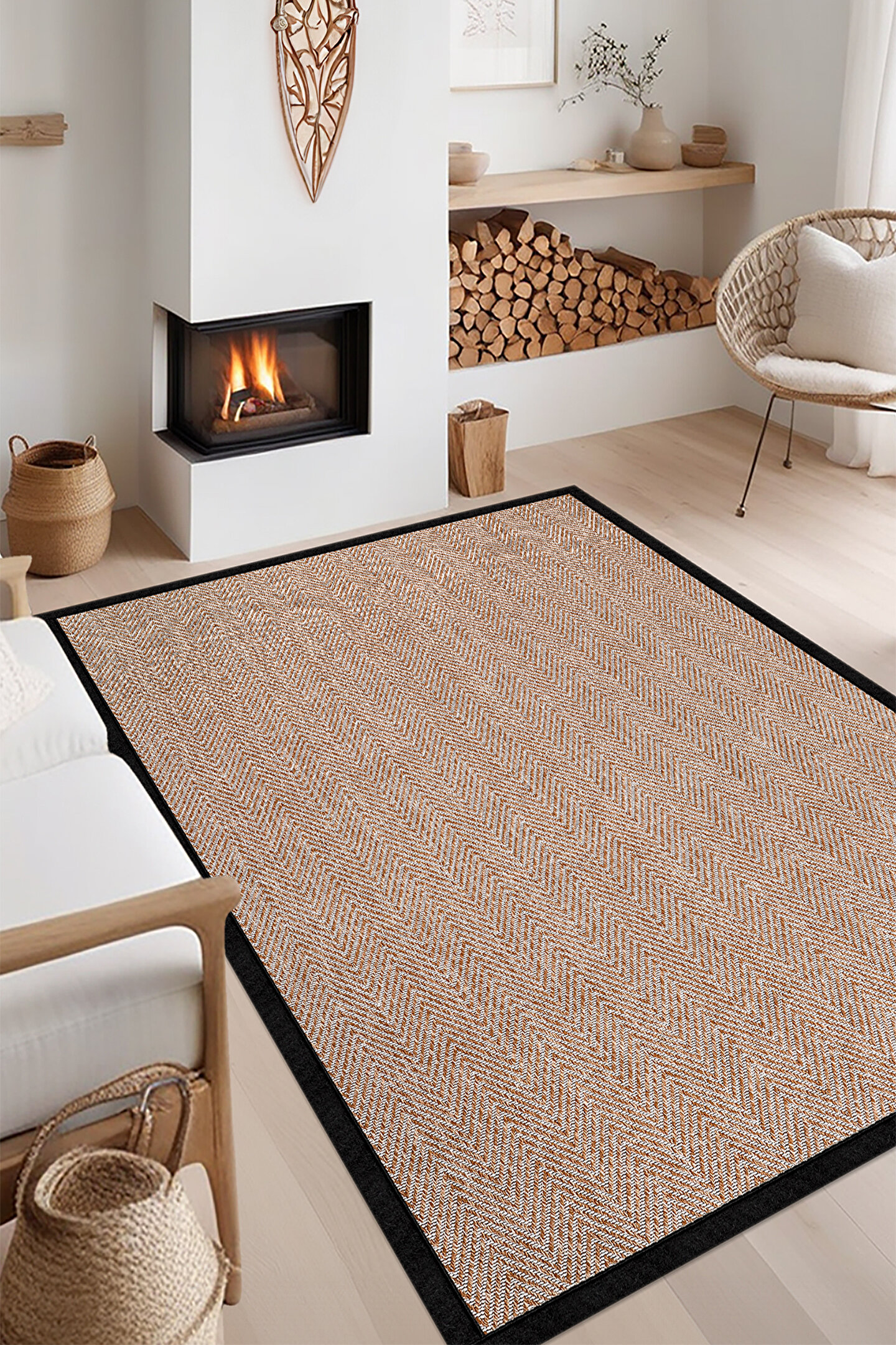 SARAZ HALI 0408-Siyah Kumaş Bordür Sisal Halı Kilim Hav Toz Vermez Kolay Temizlenen Hasır Kilim