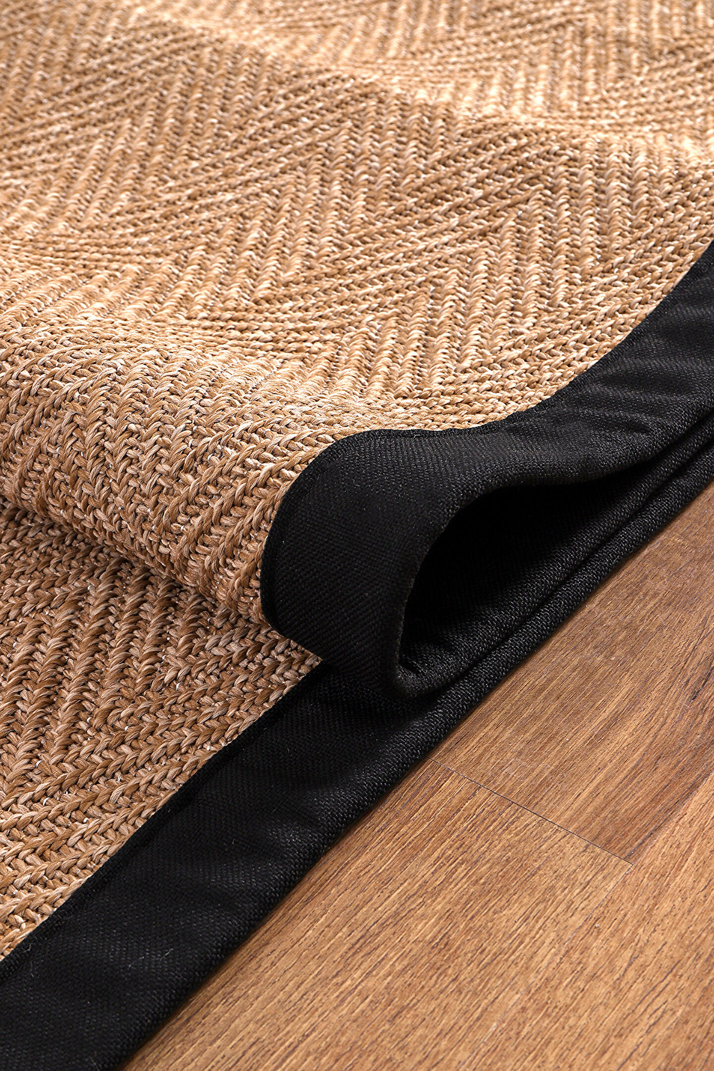 SARAZ HALI 0503-Siyah Kumaş Bordür Sisal Halı Kilim Hav Toz Vermez Kolay Temizlenen Hasır Kilim