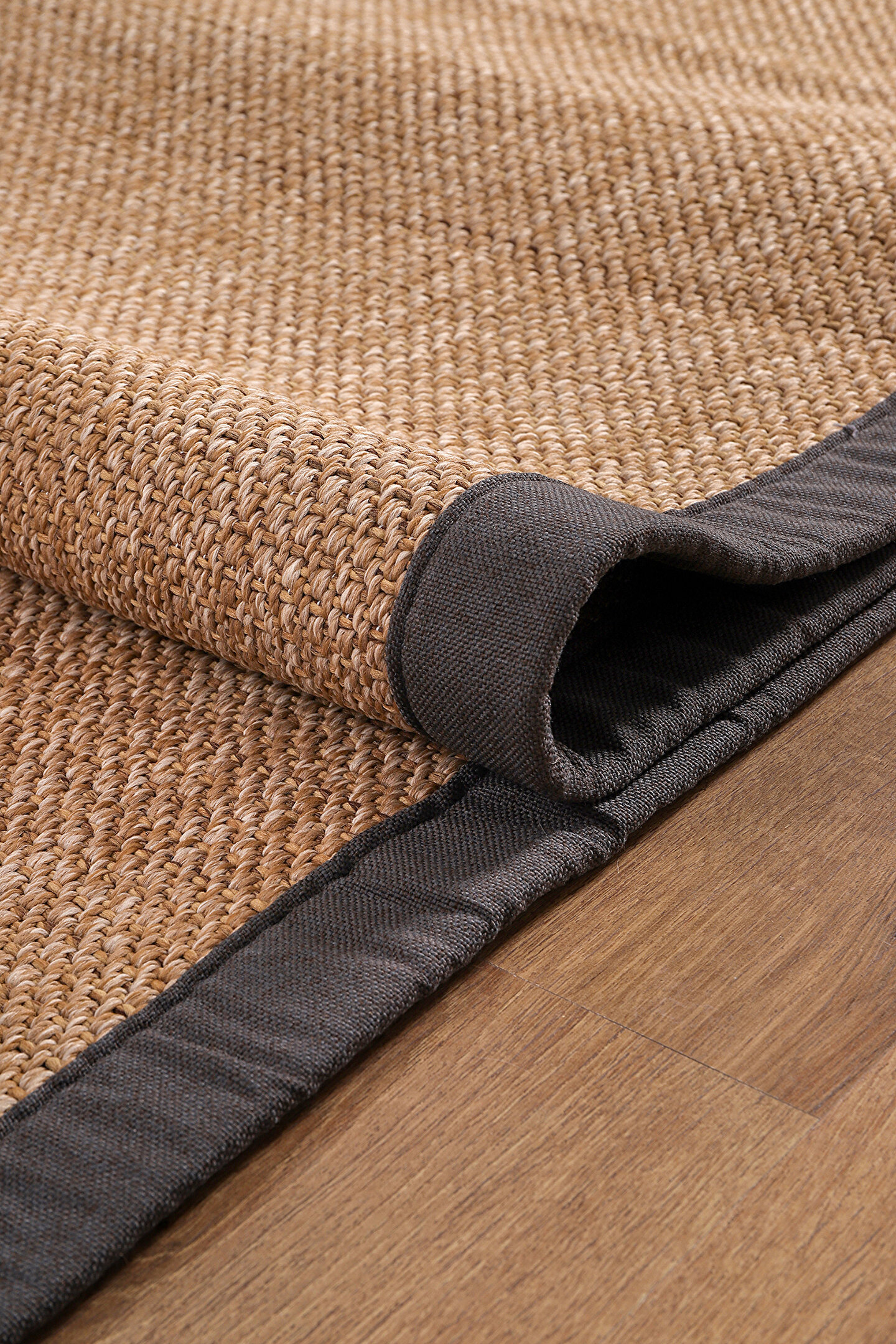 SARAZ HALI 0604-Antrasit Kumaş Bordür Sisal Jut Halı Kilim Hav Toz Vermez Kolay Temizlenen Hasır Kilim
