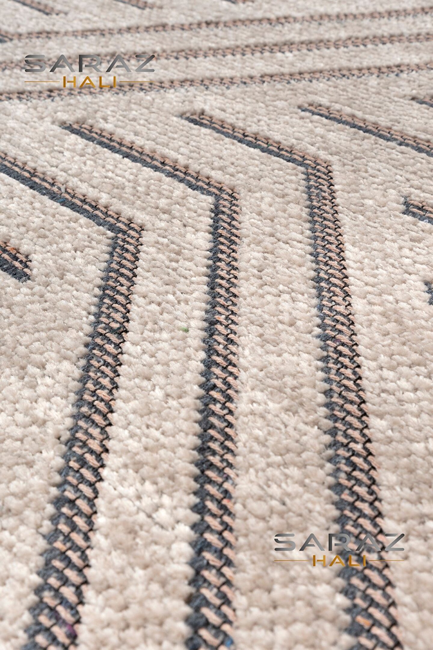 SARAZ HALI Ada Kilim Modern Salon Mutfak Koridor Kesme Yolluk Dokuma Makine Halısı zigzag krem