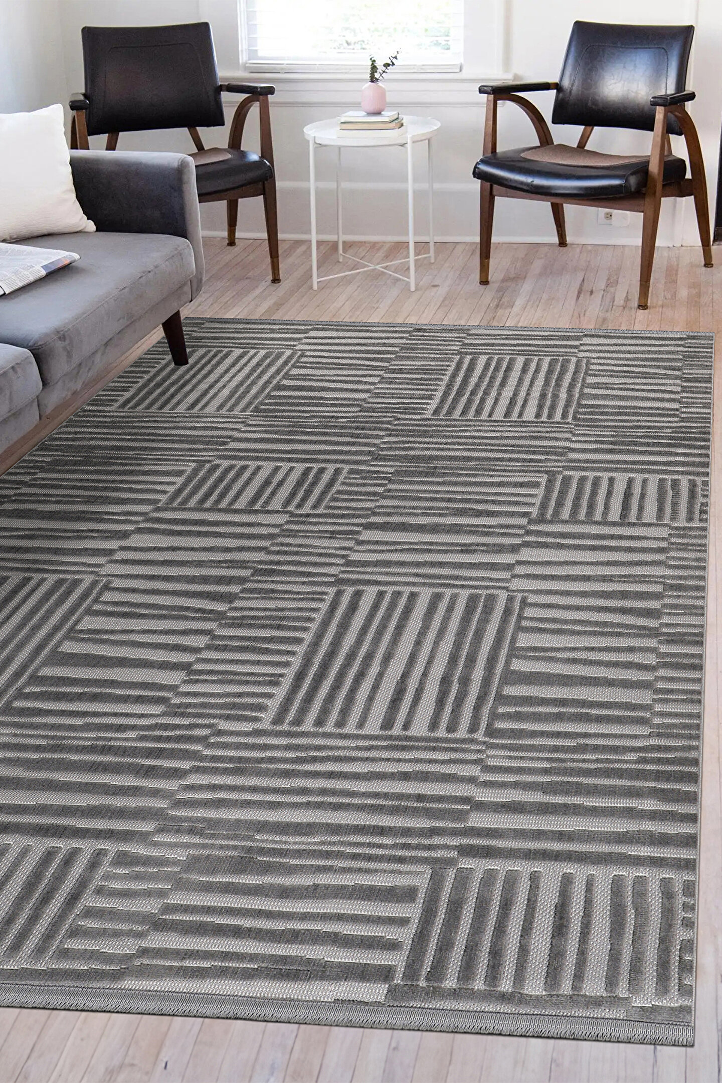 SARAZ HALI Bambu Yumuşak Halı Salon Mutfak Koridor Kesme Yolluk Dokuma Makine Halısı Art Antrasit