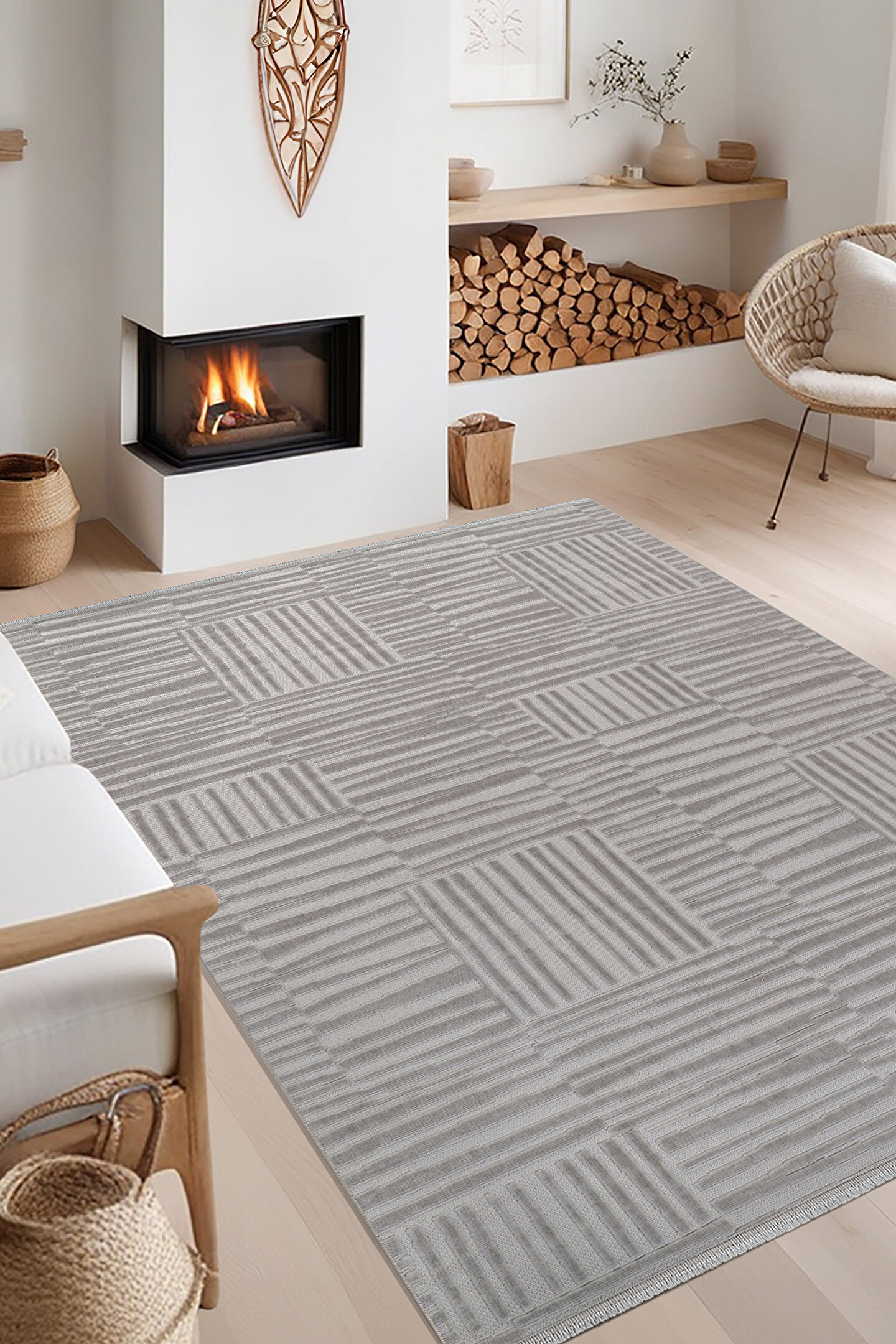 SARAZ HALI Bambu Yumuşak Halı Salon Mutfak Koridor Kesme Yolluk Dokuma Makine Halısı Art Gri