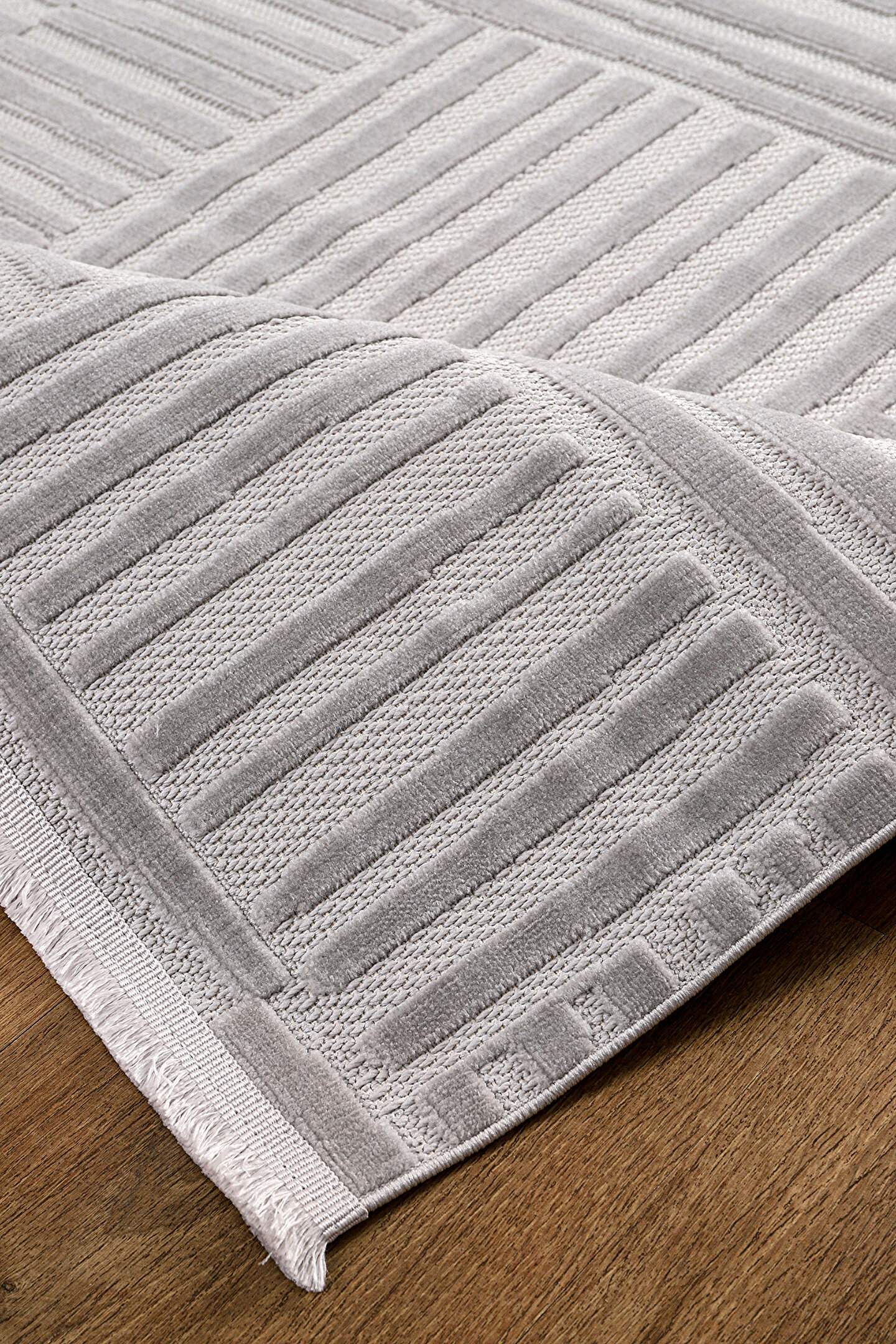 SARAZ HALI Bambu Yumuşak Halı Salon Mutfak Koridor Kesme Yolluk Dokuma Makine Halısı Art Gri