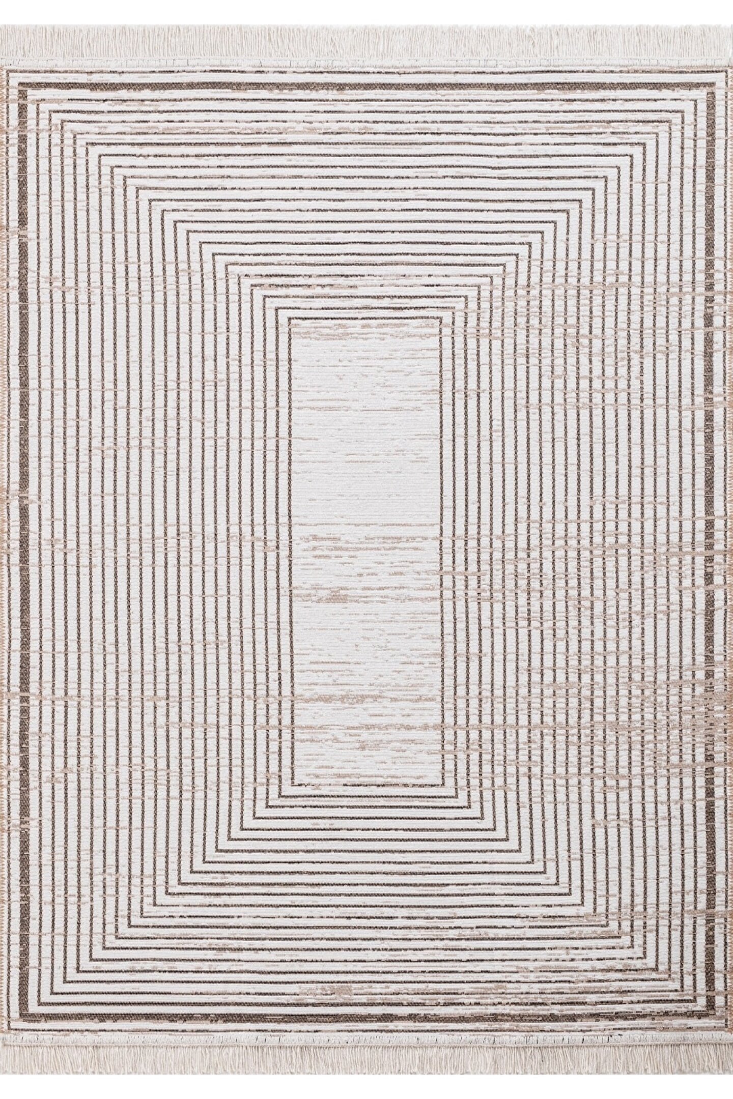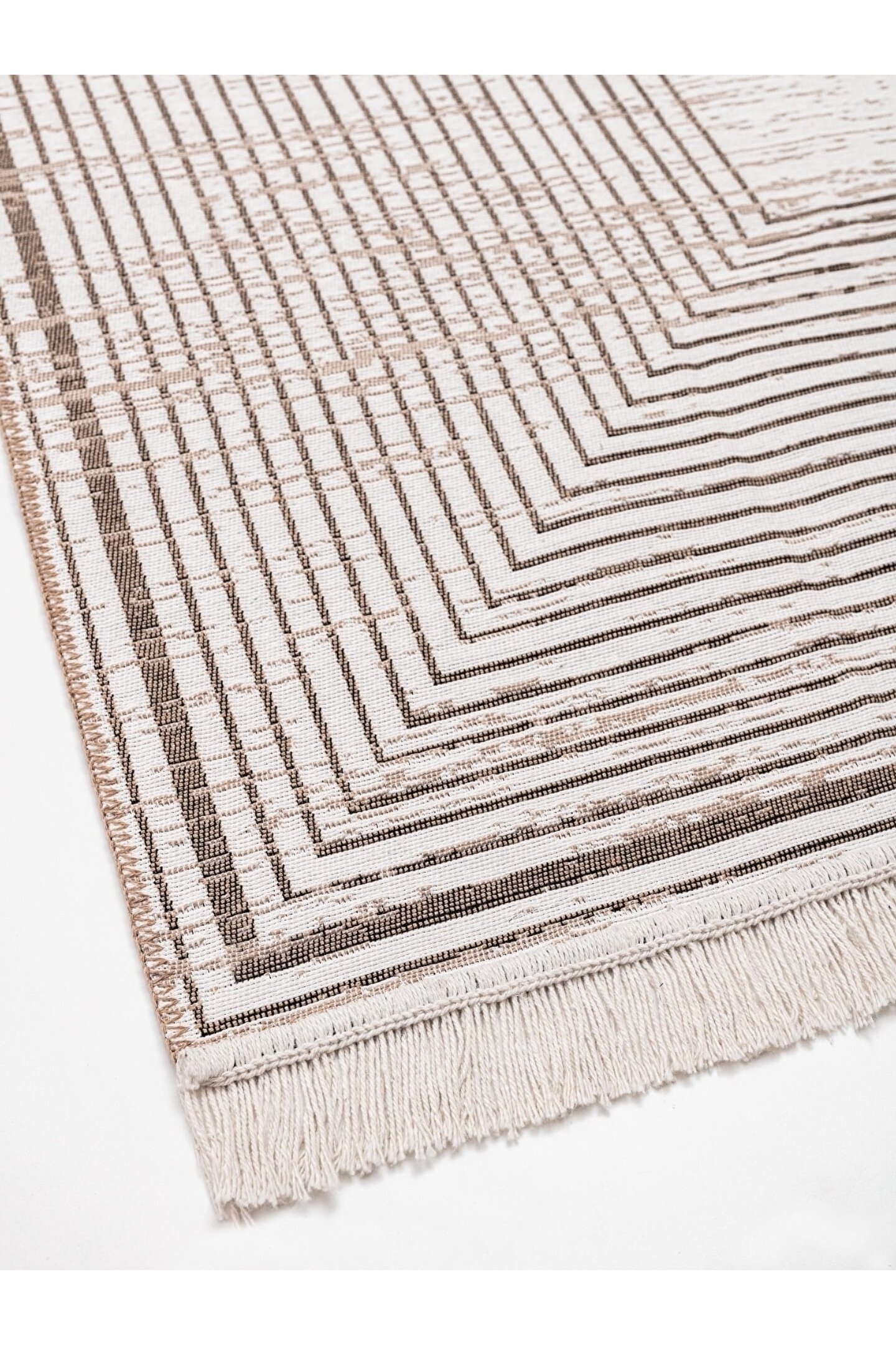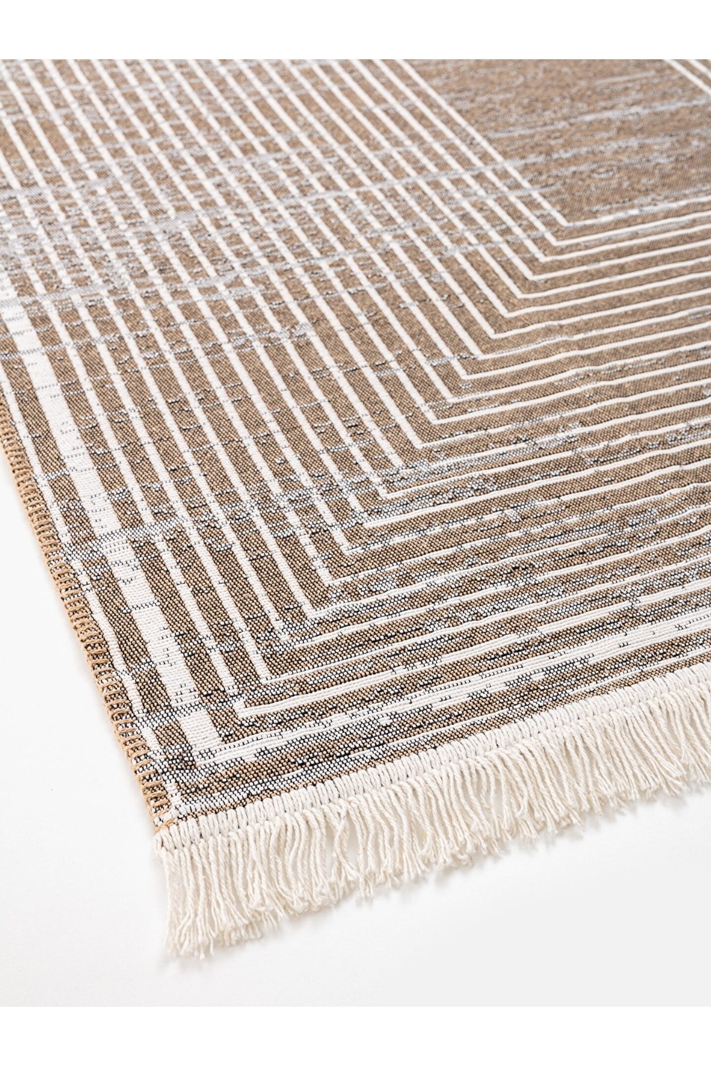 - Bej rengiyle zarif bir görünüm sunar ve mekanınıza sıcaklık katar.; - Pamuk tabanı sayesinde yumuşak bir dokunuş sağlar ve ayaklarınızın altında rahatlık hissi verir.; - Makine halısı üretim tekniği ile üretilmiş olup, dayanıklılığı ve kalitesi ön plandadır.; - Type 3 yıkama talimatına uygun şekilde kolayca temizlenebilir; böylece hijyenik kullanım imkanı sunar.; - Pamuklu materyali sayesinde hava geçirgenliği yüksek olup, uzun süreli konfor sağlar.; - Klasik tema/stili ile her türlü dekorasyona kolayca uyum sağlayarak zamansız bir estetik sunar.; - Çift taraflı kullanım özelliği ile farklı dekoratif etkiler yaratma fırsatı tanır.; - Dikdörtgen şekli standart salon veya oturma odası ölçülerine uygundur; mekânınızda harmonik bir denge oluşturur.; - geniş alanlarda bile rahatça kullanılabilir.