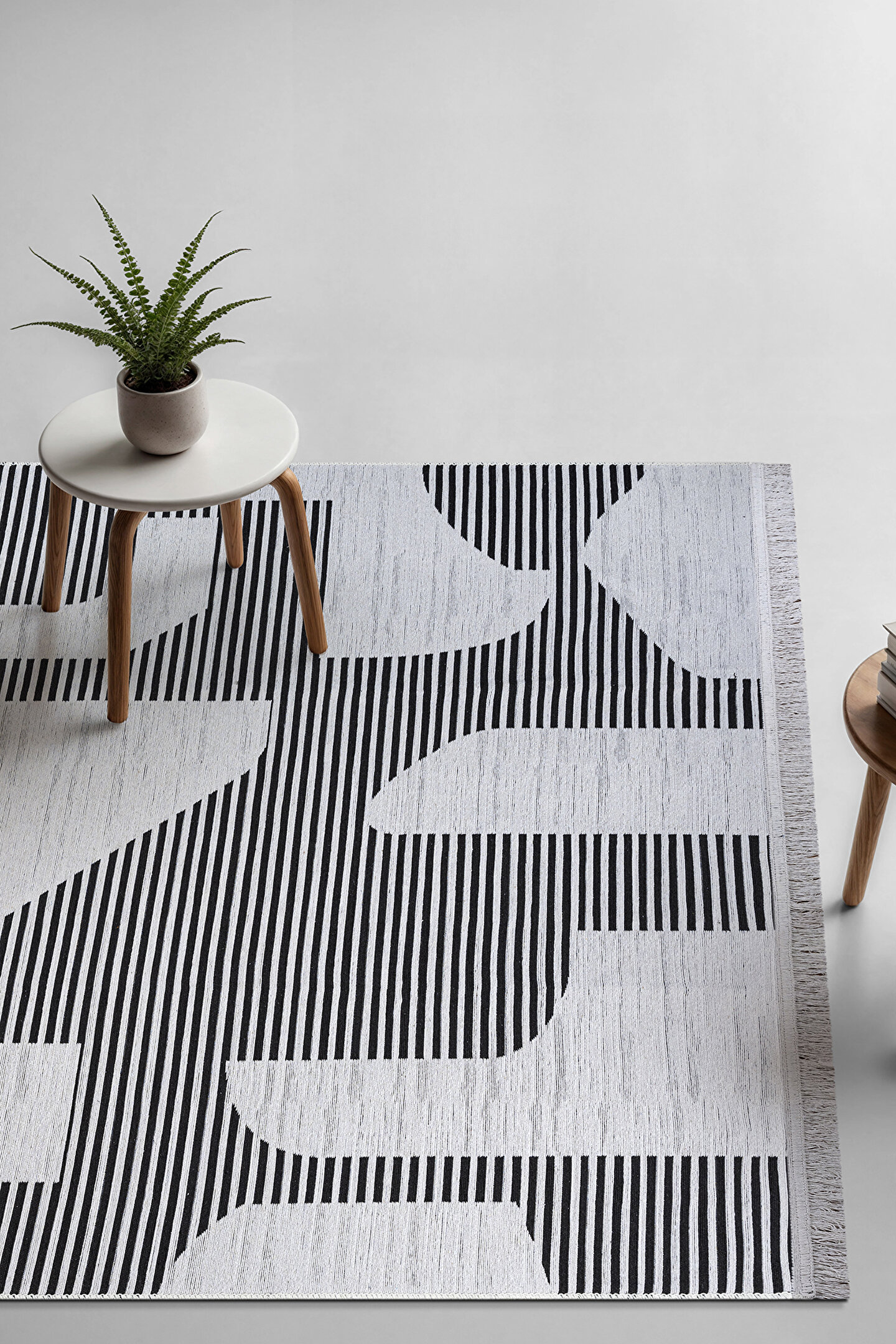 SARAZ HALI Bohem Touch Serisi Çift Taraflı Dokuma Pamuklu Kilim 2108 Siyah