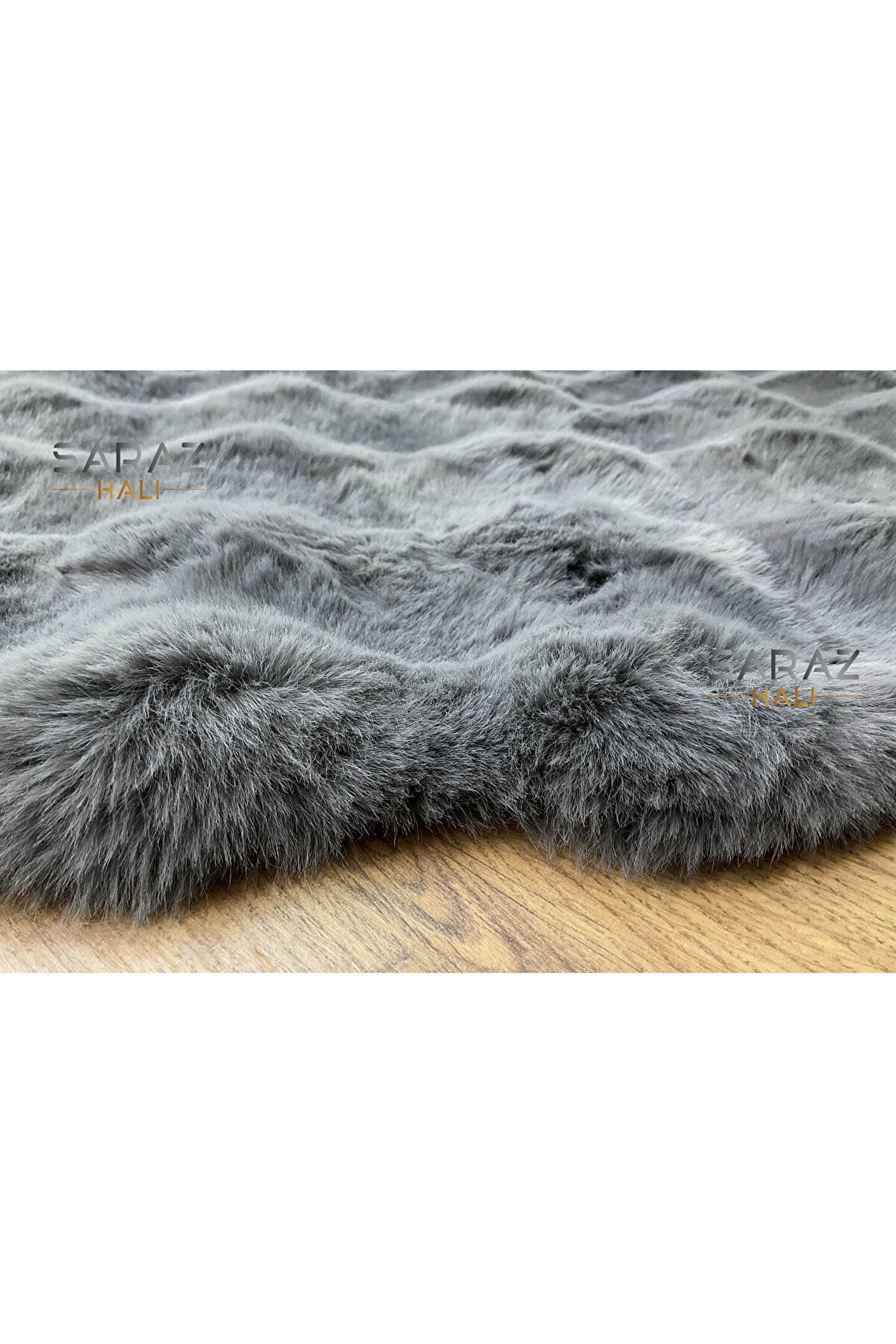 SARAZ HALI Bubble Tavşan Post Yumuşacık Tavşan Tüyü Kaymaz Yıkanabilir Antrasit