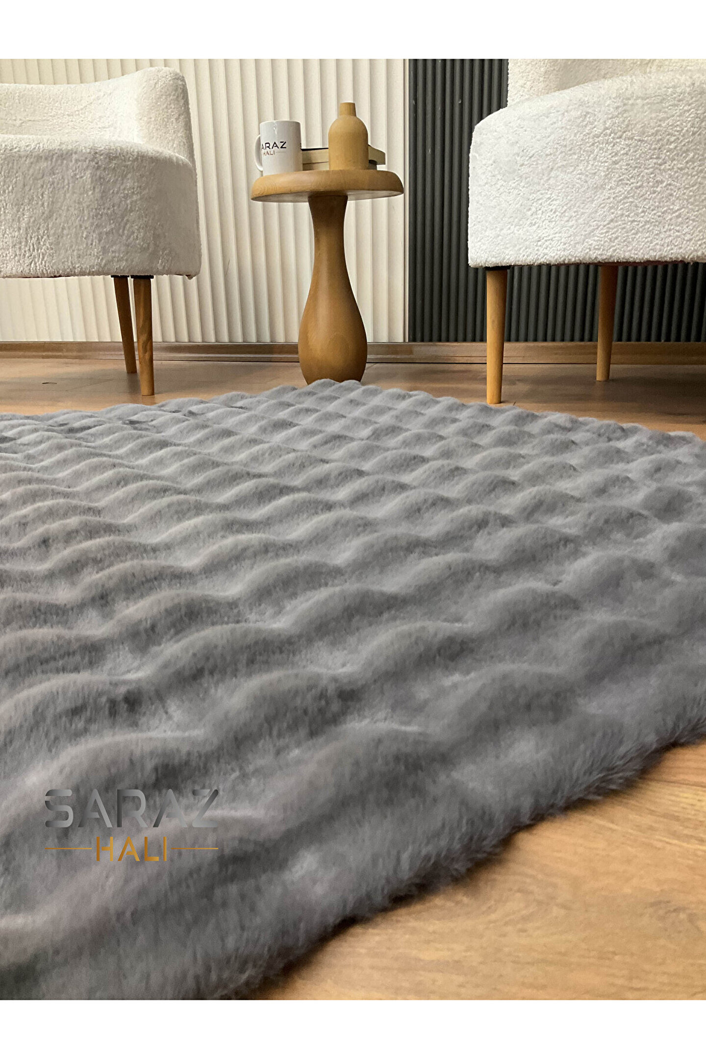 SARAZ HALI Bubble Tavşan Post Yumuşacık Tavşan Tüyü Kaymaz Yıkanabilir Antrasit