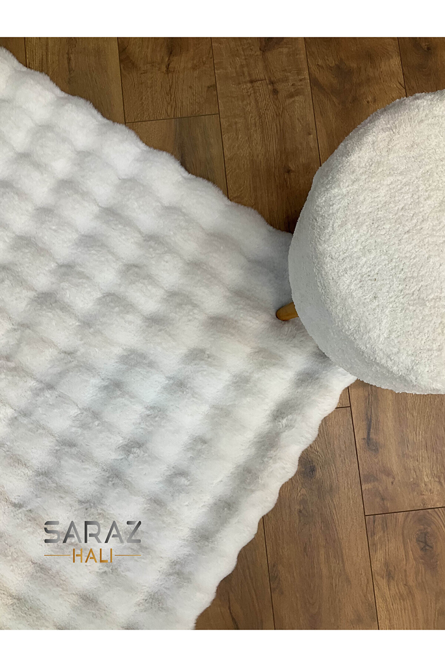 SARAZ HALI Bubble Tavşan Post Yumuşacık Tavşan Tüyü Kaymaz Yıkanabilir Beyaz