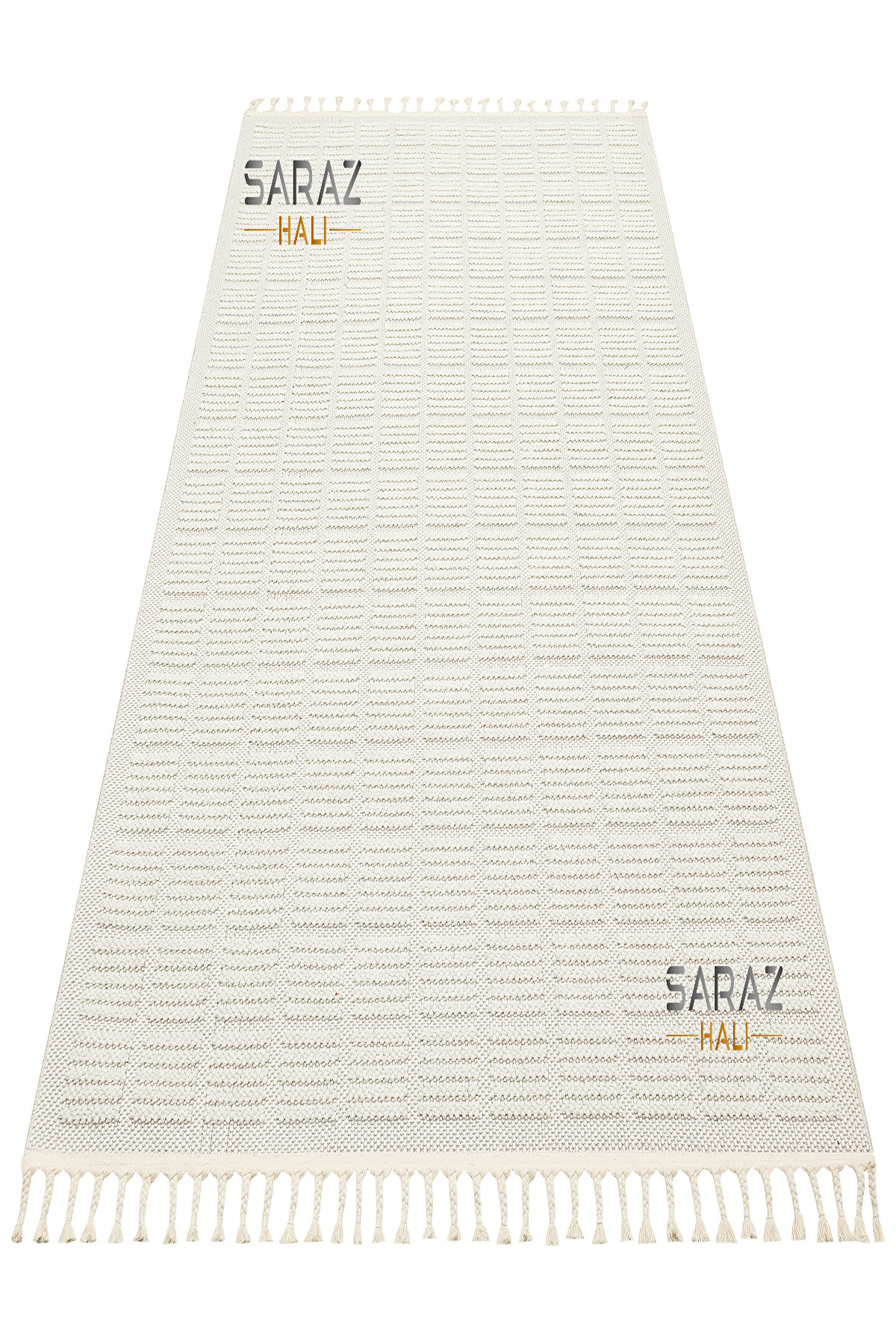 SARAZ HALI Bukle Beyaz Yumuşak Dokulu Halı Kilim Salon Mutfak Koridor Kesme Yolluk Dokuma Makine Halısı 11880