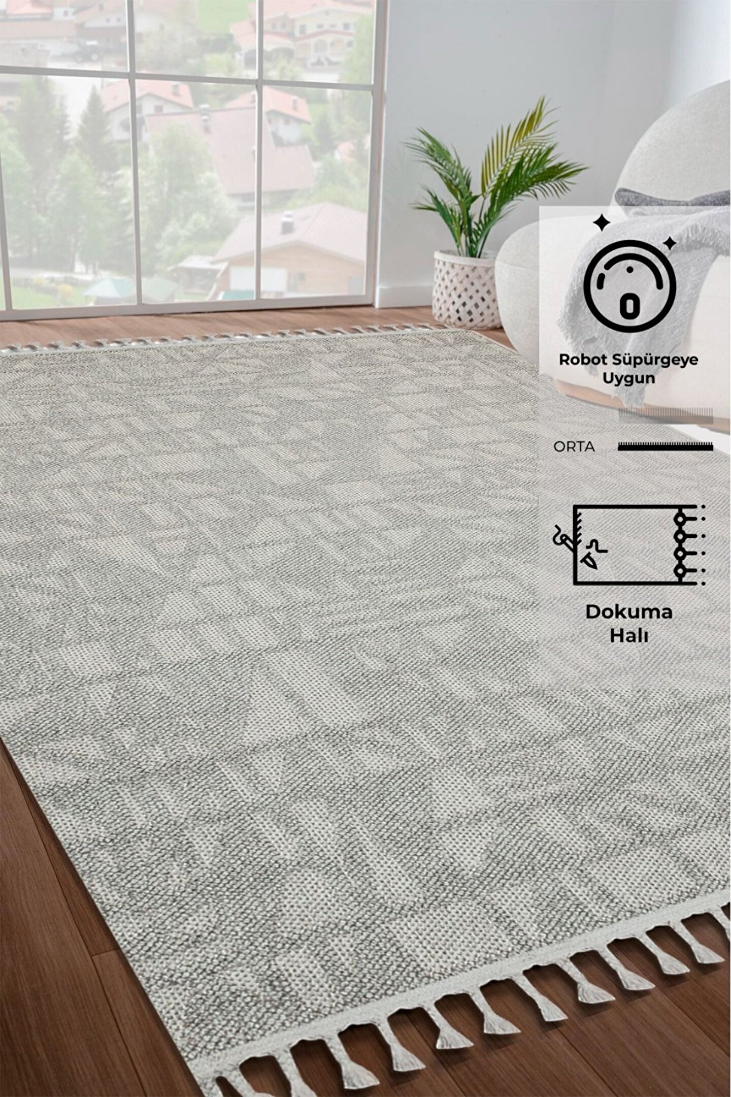 SARAZ HALI Bukle Gri Yumuşak Dokulu Halı Kilim Salon Mutfak Koridor Kesme Yolluk Dokuma Makine Halısı 11883