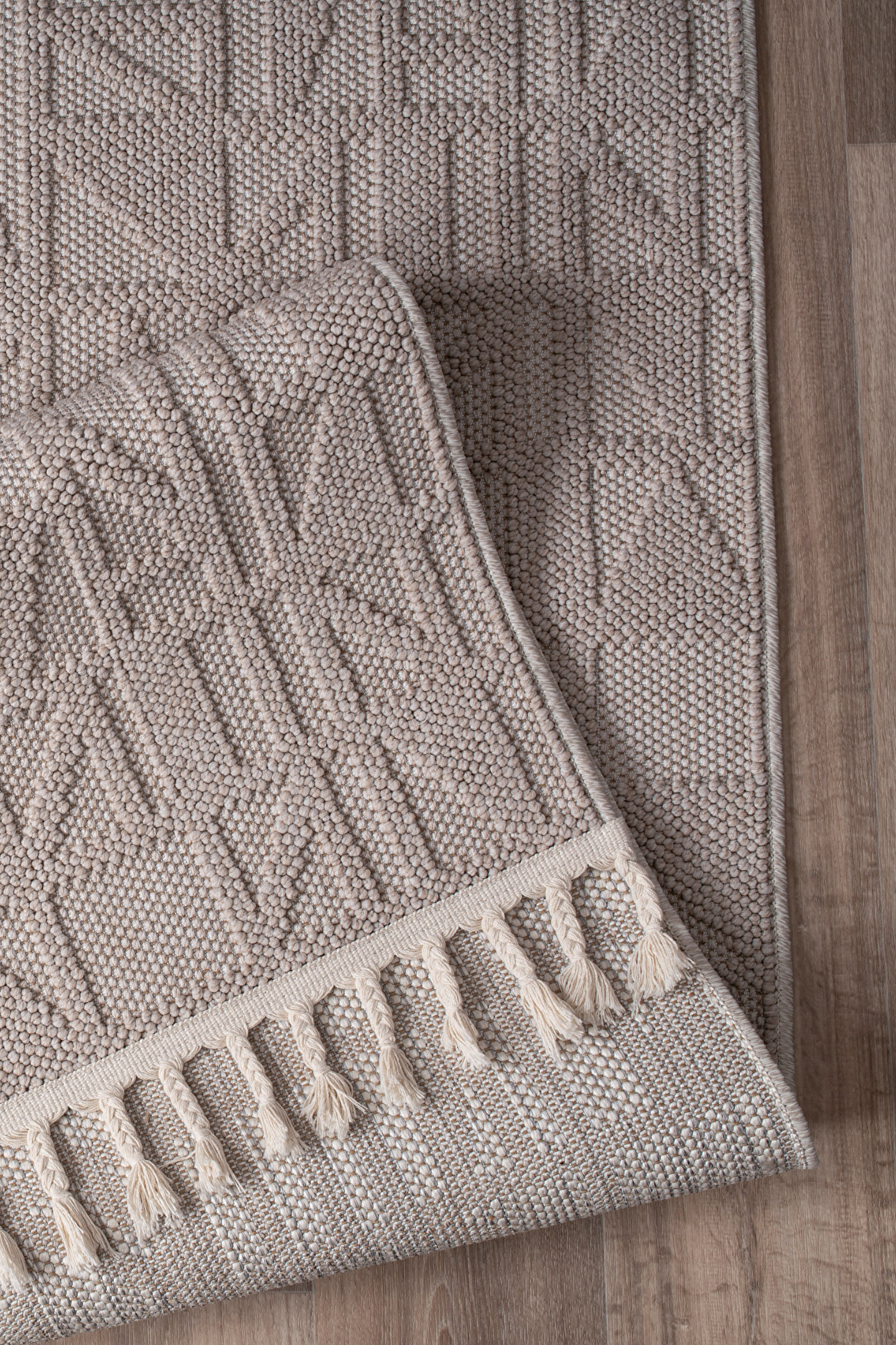 SARAZ HALI Bukle11883 Bej Yumuşak Dokulu Halı Kilim Salon Mutfak Koridor Kesme Yolluk Dokuma Makine Halısı