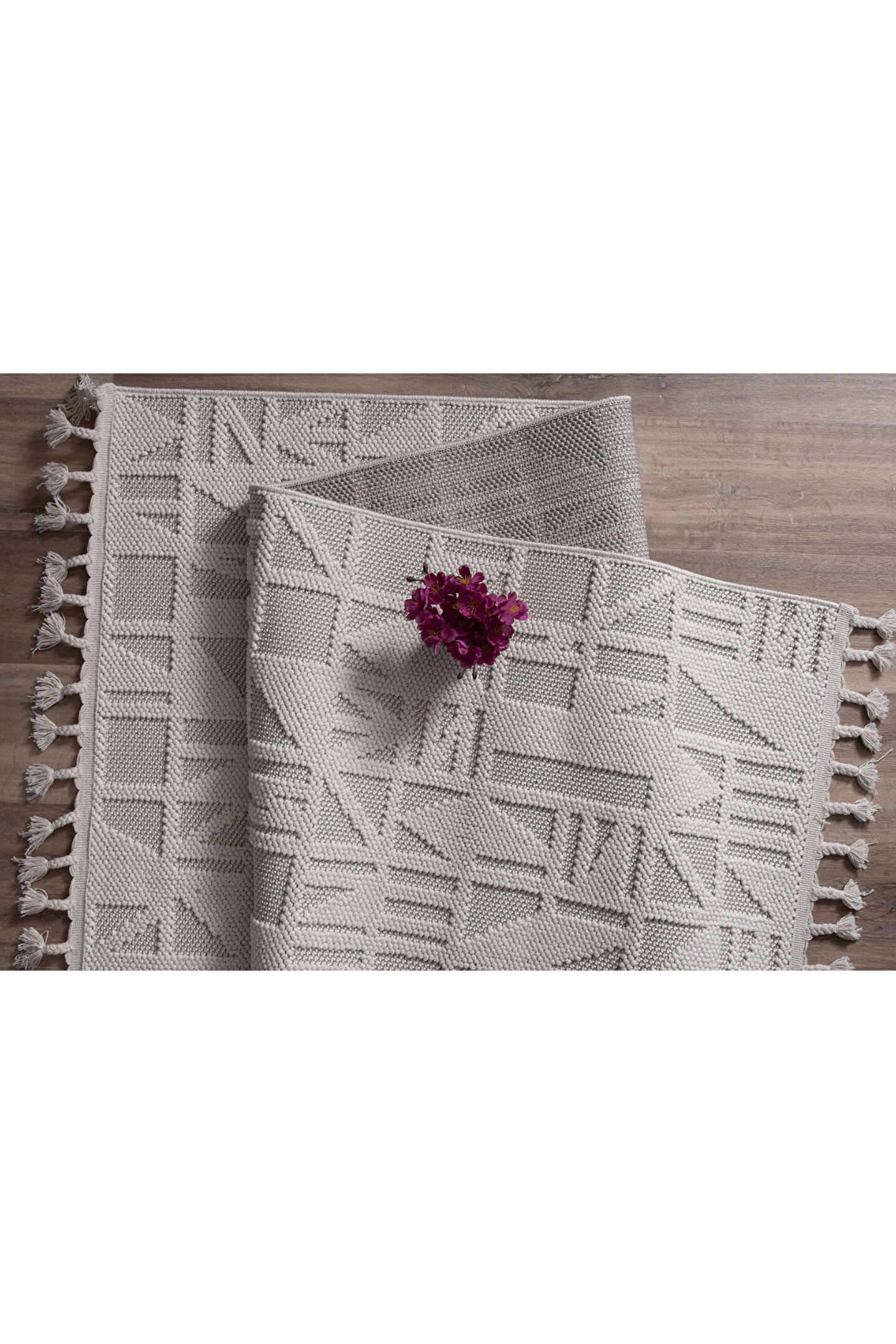 SARAZ HALI Bukle11883 Beyaz Yumuşak Dokulu Halı Kilim Salon Mutfak Koridor Kesme Yolluk Dokuma Makine Halısı