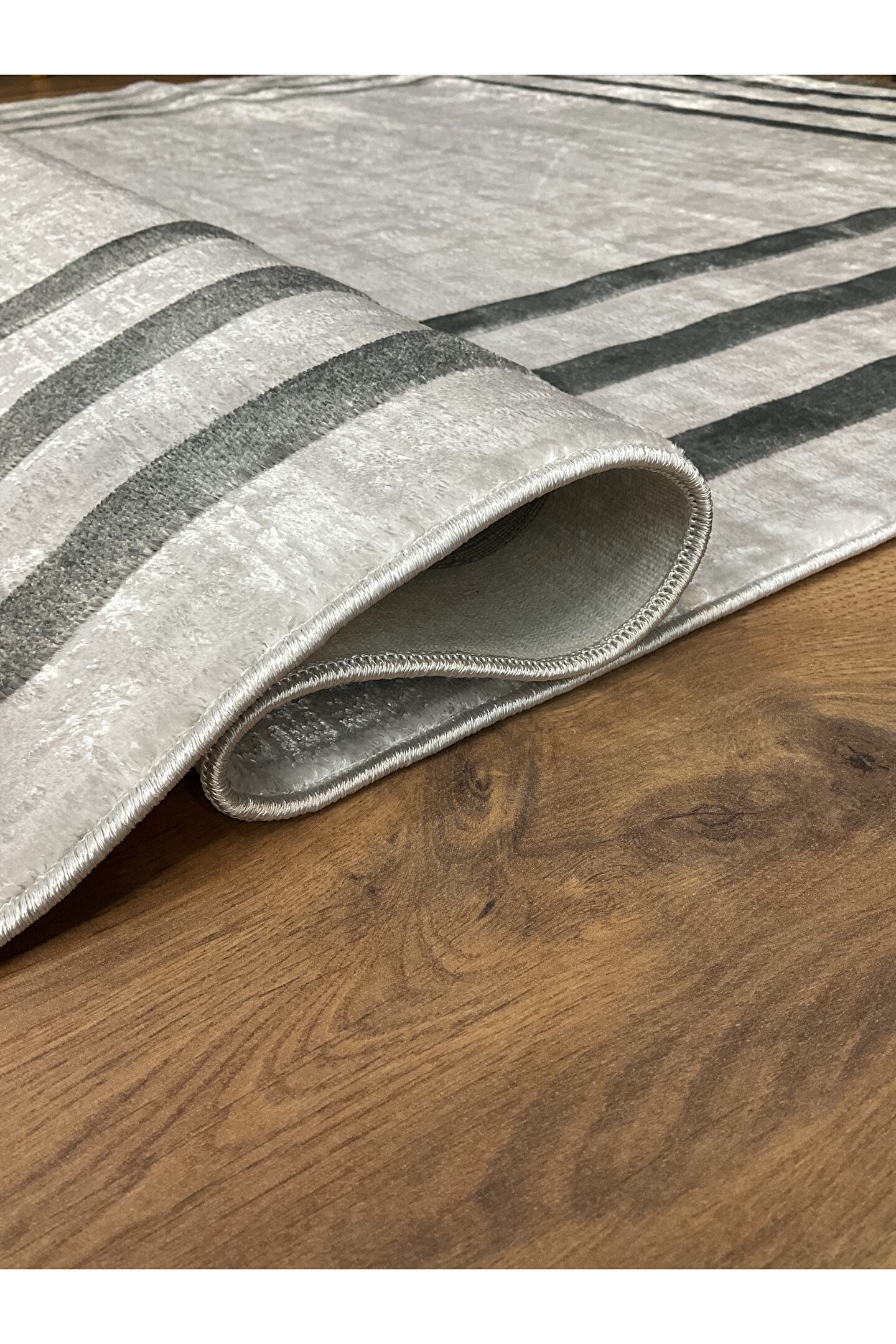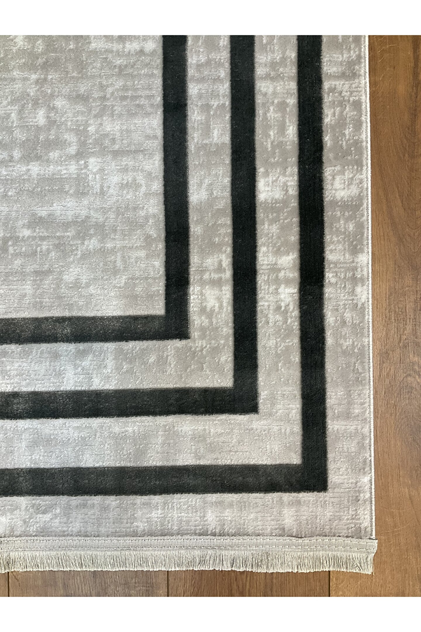 SARAZ HALI Çerçeve Model Bambu Yıkanabilir Parlak Halı Gri Çizgi