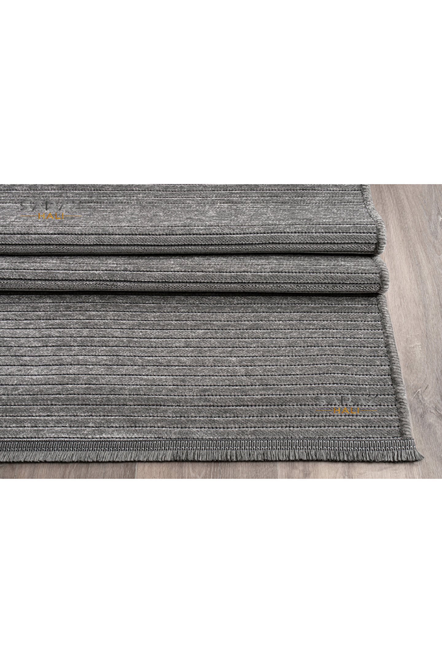SARAZ HALI Dizayn Şönil Dokuma Kayma Yapmaz Makinede Yıkanabilir Leke Tutmaz Kesme Bohem Kilim Gri