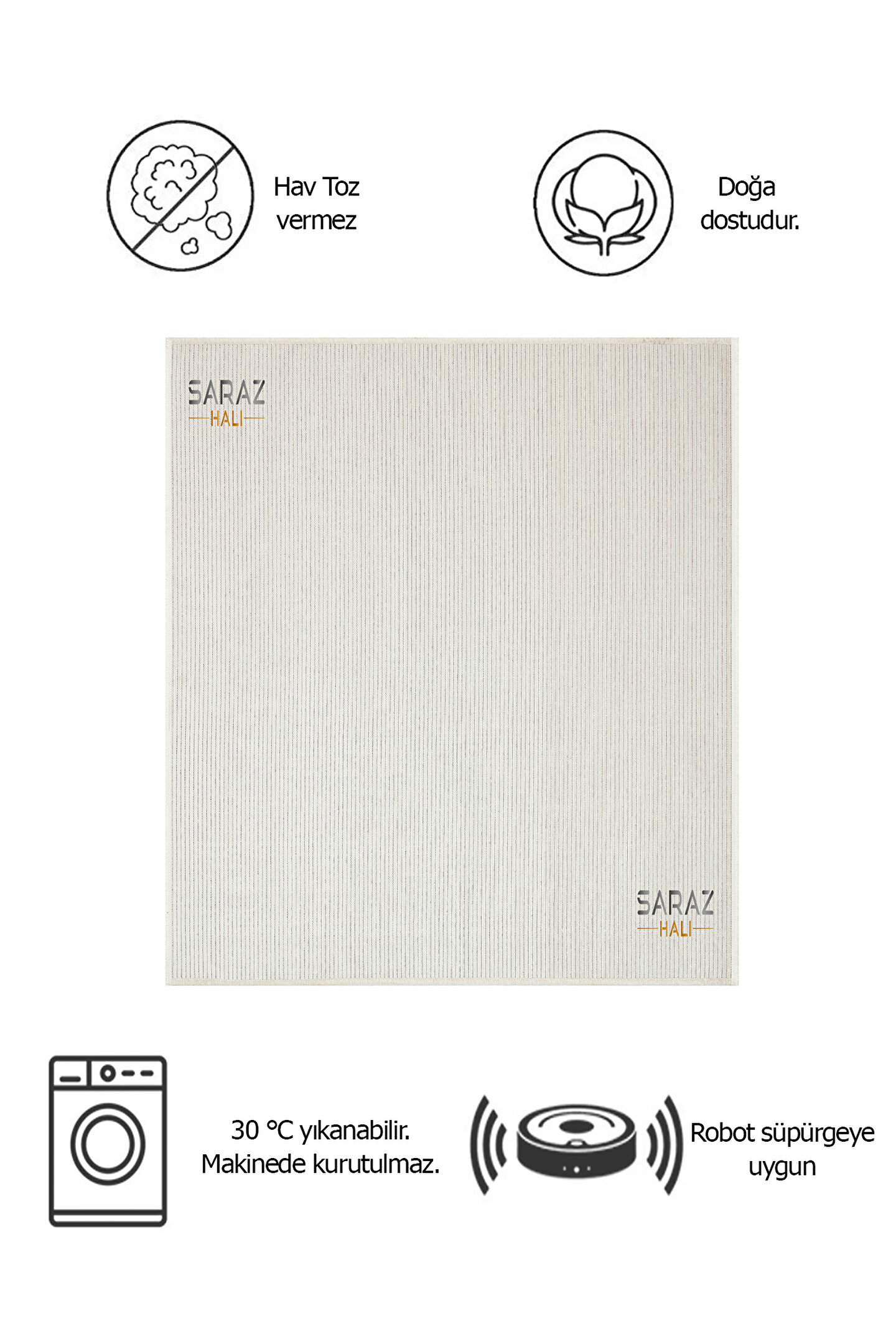 SARAZ HALI Dizayn Şönil Dokuma Kayma Yapmaz Makinede Yıkanabilir Leke Tutmaz Kesme Bohem Kilim Krem
