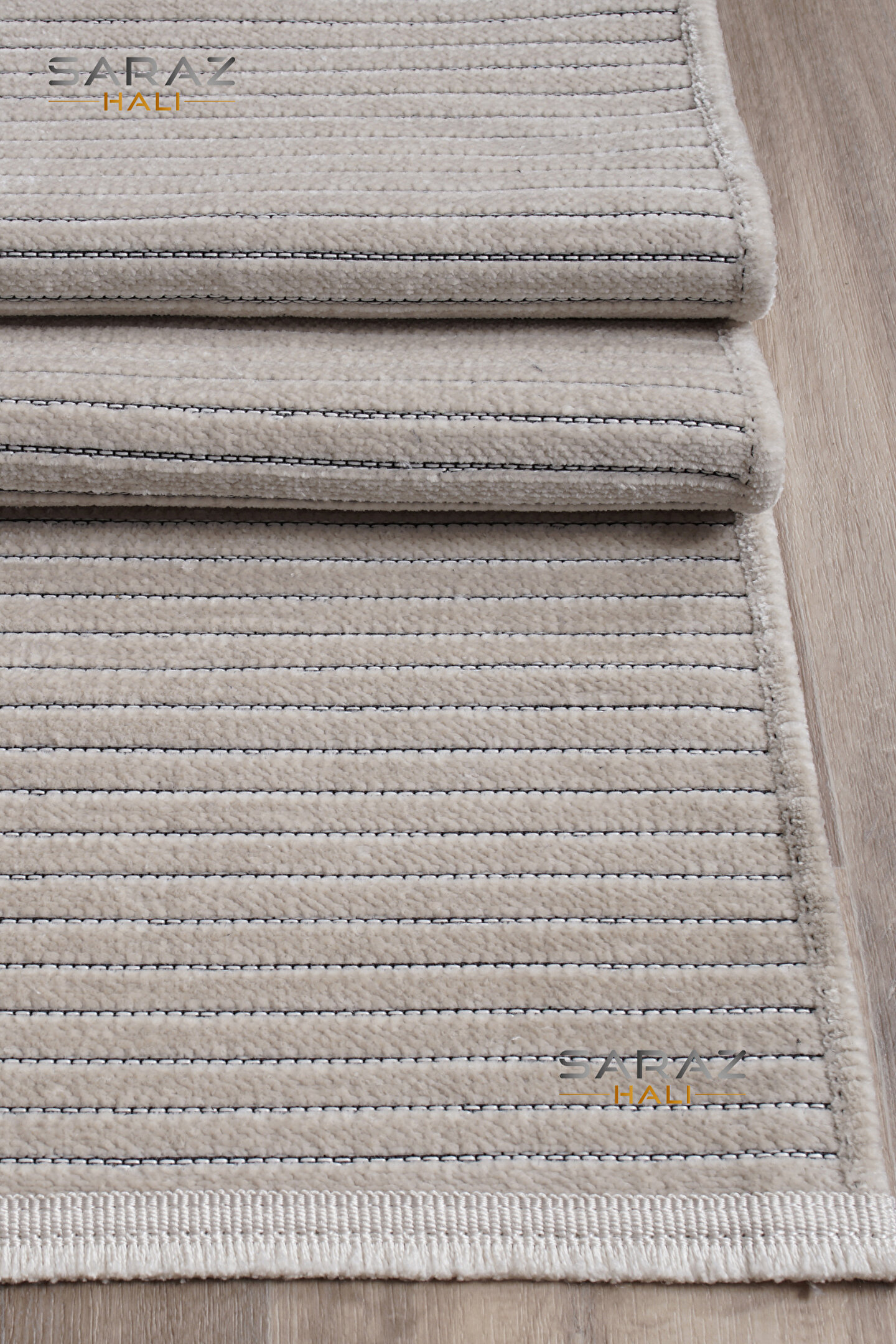 SARAZ HALI Dizayn Şönil Dokuma Kayma Yapmaz Makinede Yıkanabilir Leke Tutmaz Kesme Bohem Kilim Krem