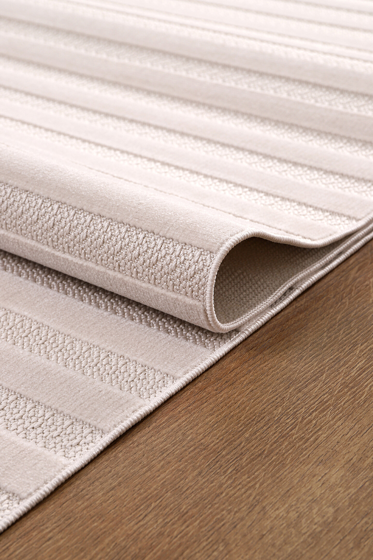 SARAZ HALI Kadife Bambu Dokuma Modern Kaymaz Salon Halısı Mutfak Halısı Koridor Halısı Yolluk Çizgi Bej