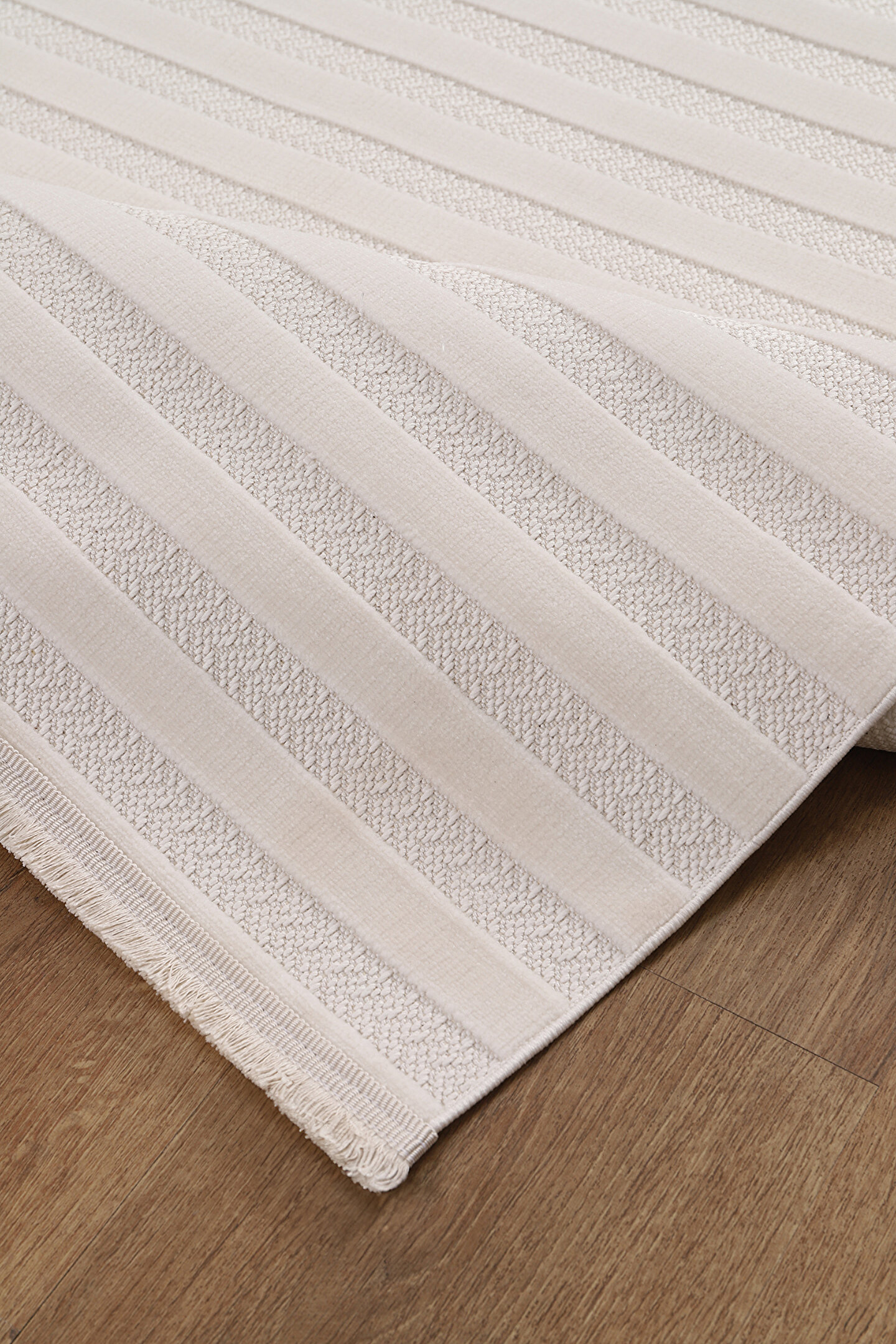 SARAZ HALI Kadife Bambu Dokuma Modern Kaymaz Salon Halısı Mutfak Halısı Koridor Halısı Yolluk Çizgi Beyaz