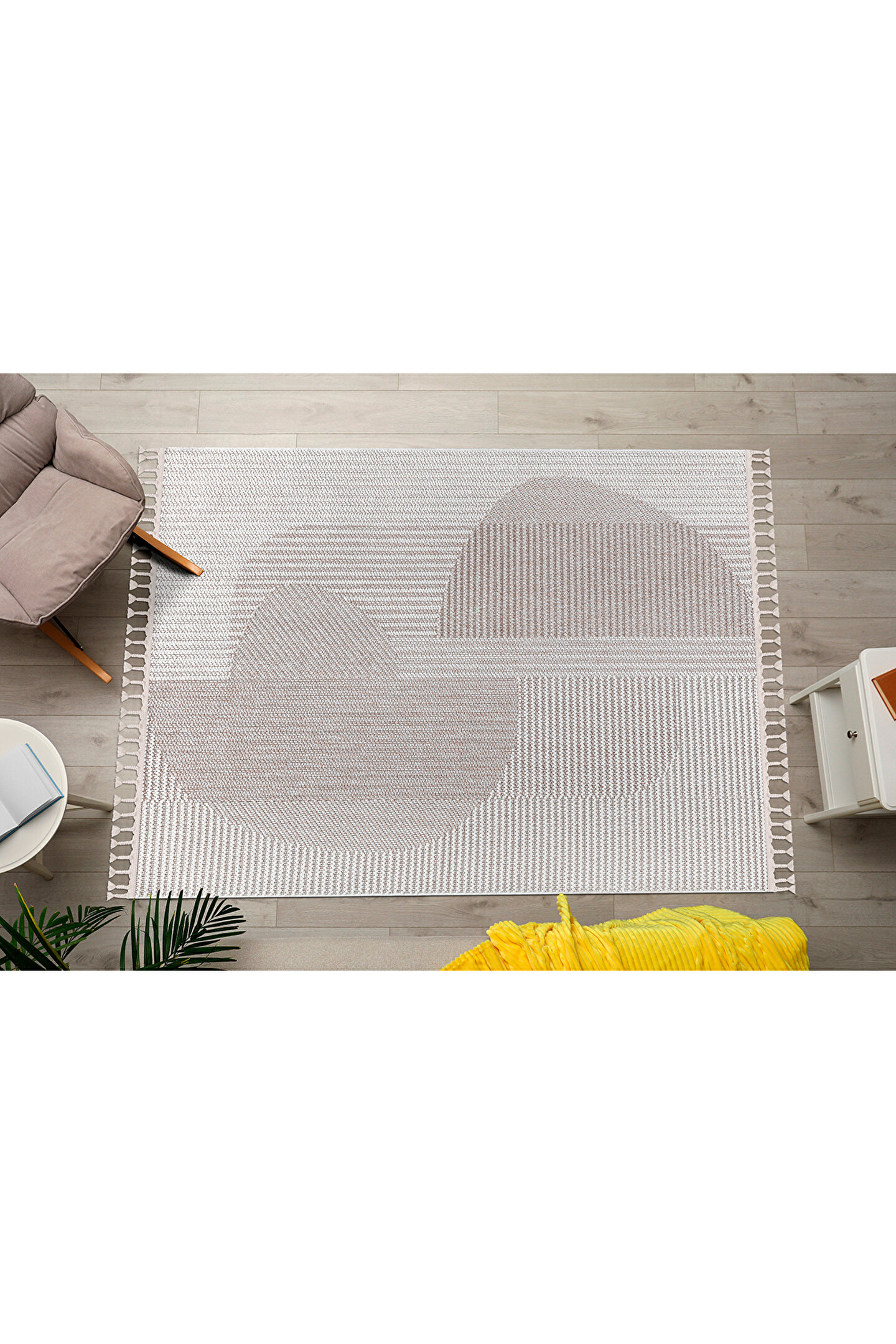 SARAZ HALI Mumbai 321 Bej - Beyaz Yumuşak Dokulu Halı Kilim Salon Mutfak Koridor Yolluk Dokuma Makine Halısı