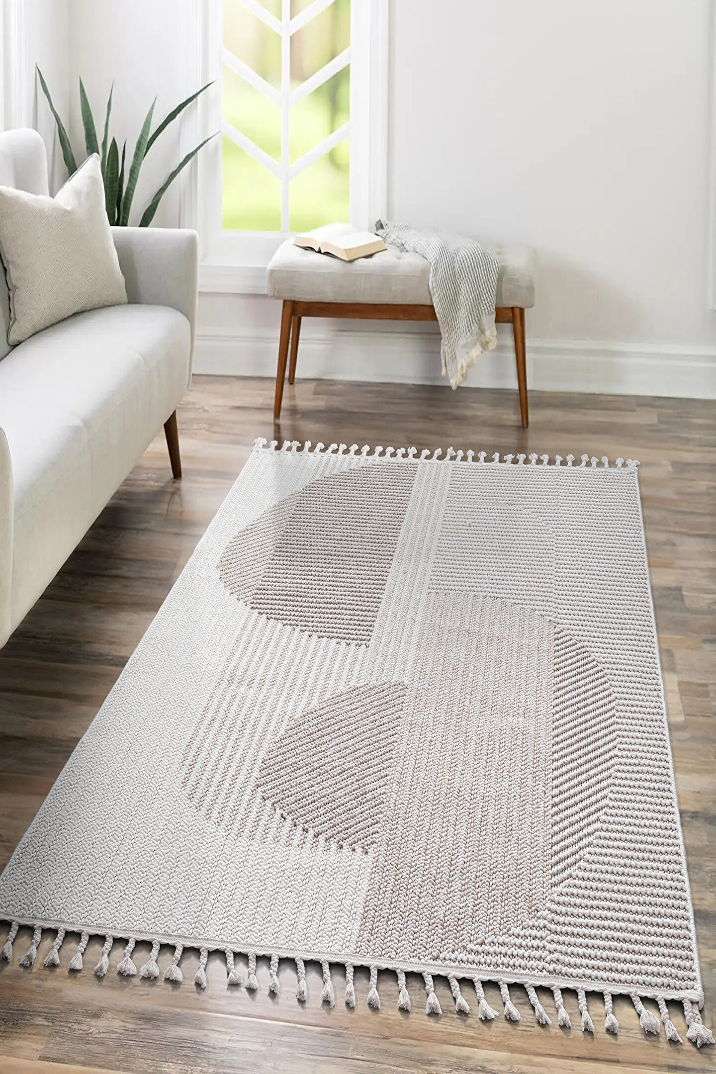 SARAZ HALI Mumbai 321 Bej - Beyaz Yumuşak Dokulu Halı Kilim Salon Mutfak Koridor Yolluk Dokuma Makine Halısı