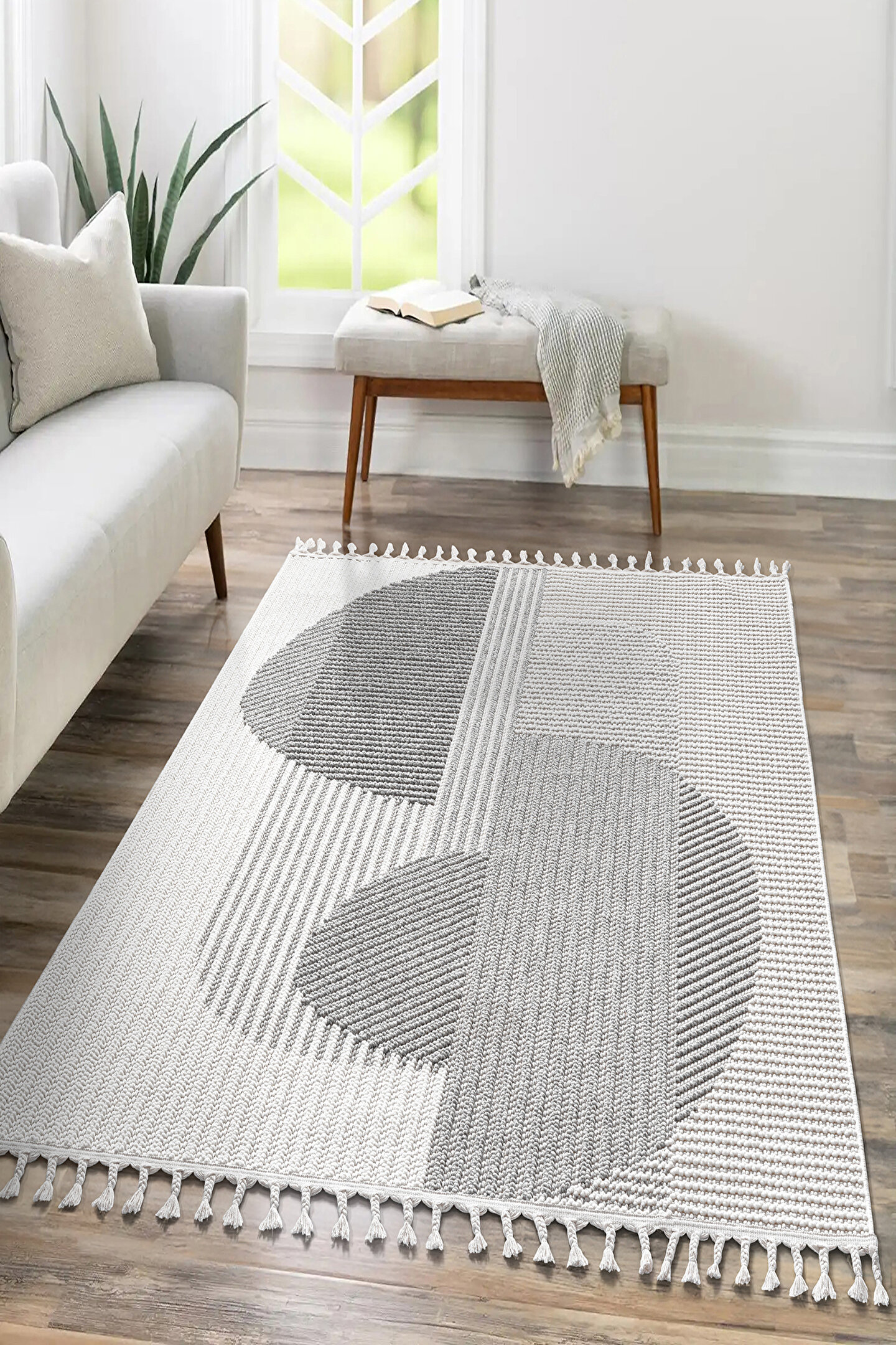 SARAZ HALI Mumbai 321 Gri - Beyaz Yumuşak Dokulu Halı Kilim Salon Mutfak Koridor Yolluk Dokuma Makine Halısı