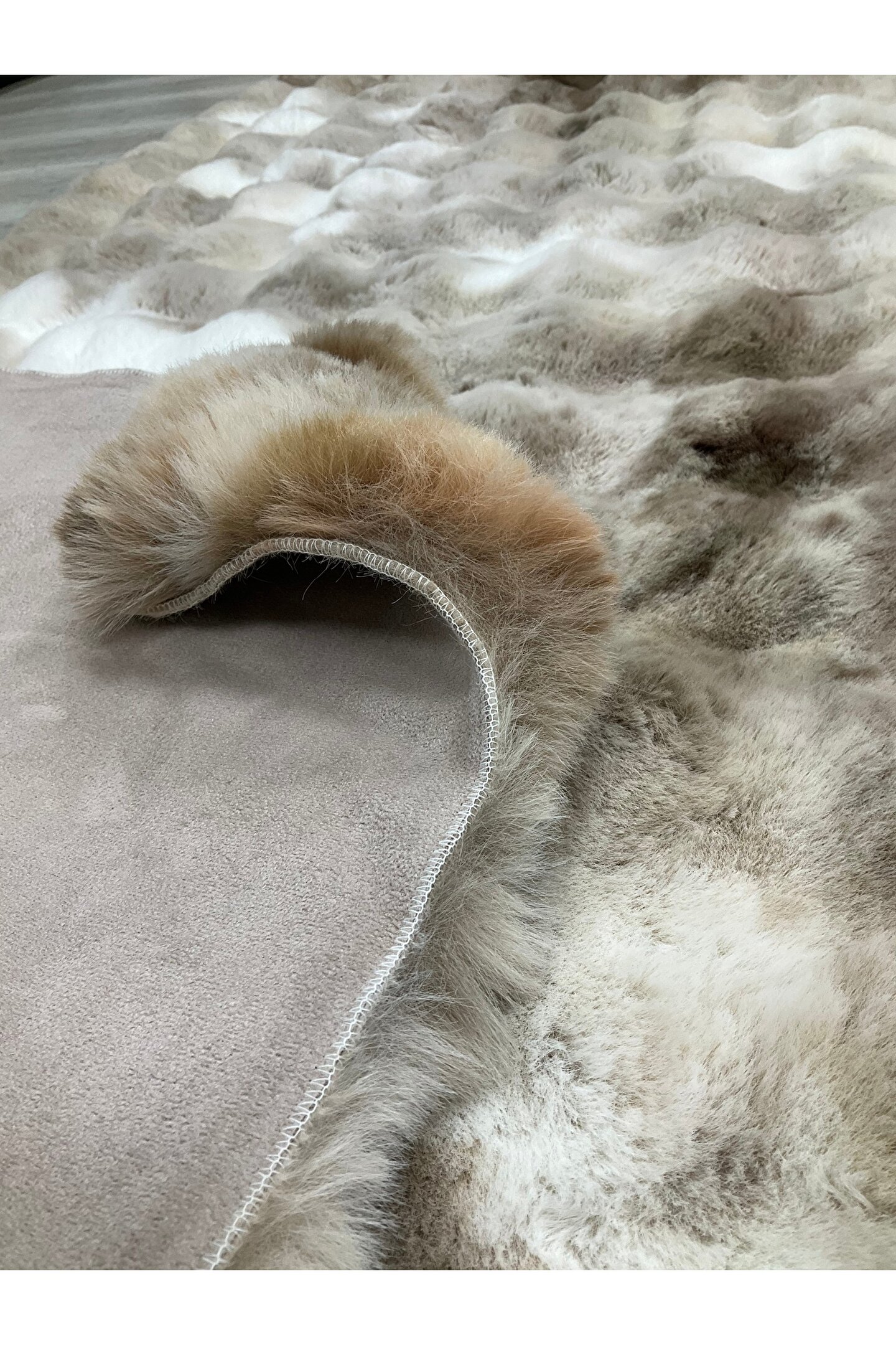 SARAZ HALI Renkli Bubble Tavşan Tüyü İthal Kaymaz Yumuşak Tüylü Tona Ton Kahverengi