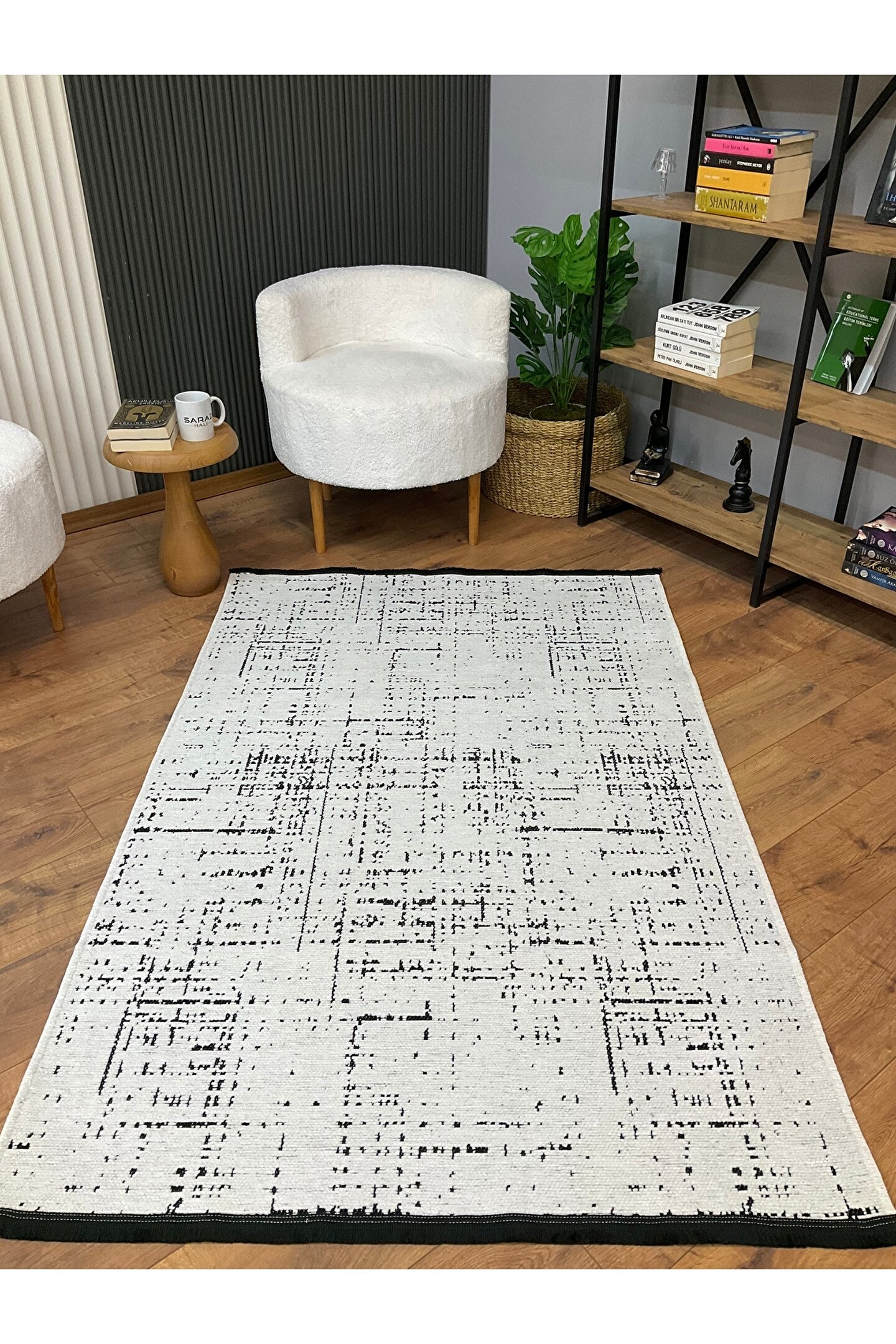 SARAZ HALI Şönil Dokuma Kayma Yapmaz Makinede Yıkanabilir Leke Tutmaz Kesme Bohem Kilim Krem 2